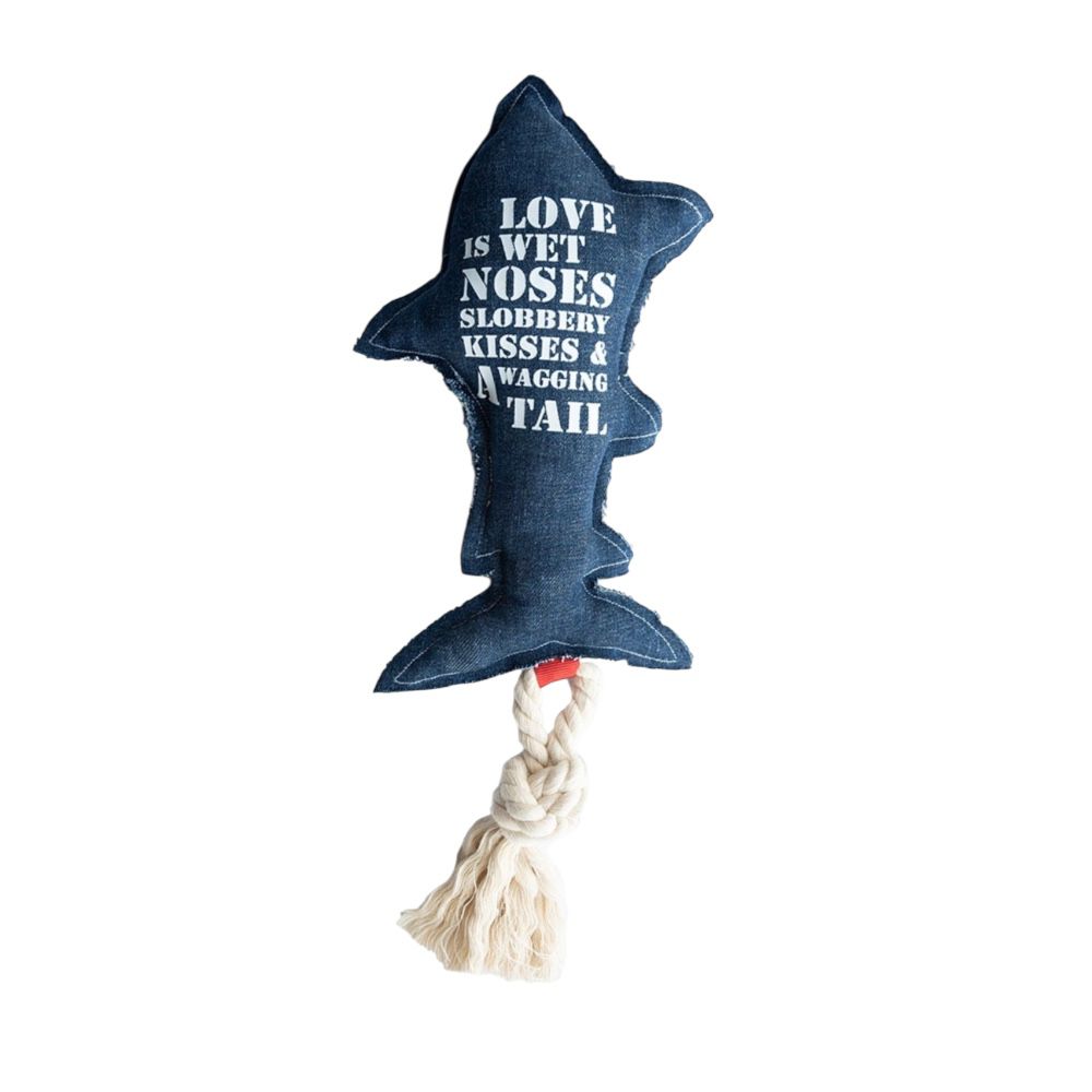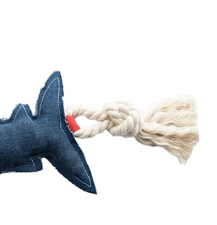Denim Köpek Oyuncağı – Köpekbalığı Şekilli, Elyaf Dolgulu, Pamuk Halatlı Dayanıklı Oyuncak