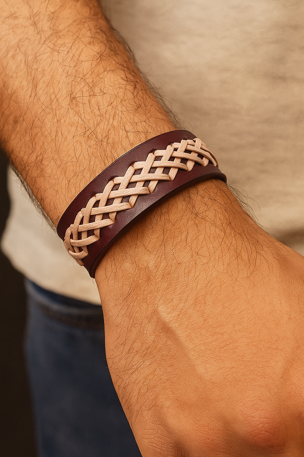 El İşçiliği Hakiki Deri Bileklik – Örgü Motifli – Unisex – Sürdürülebilir Üretim