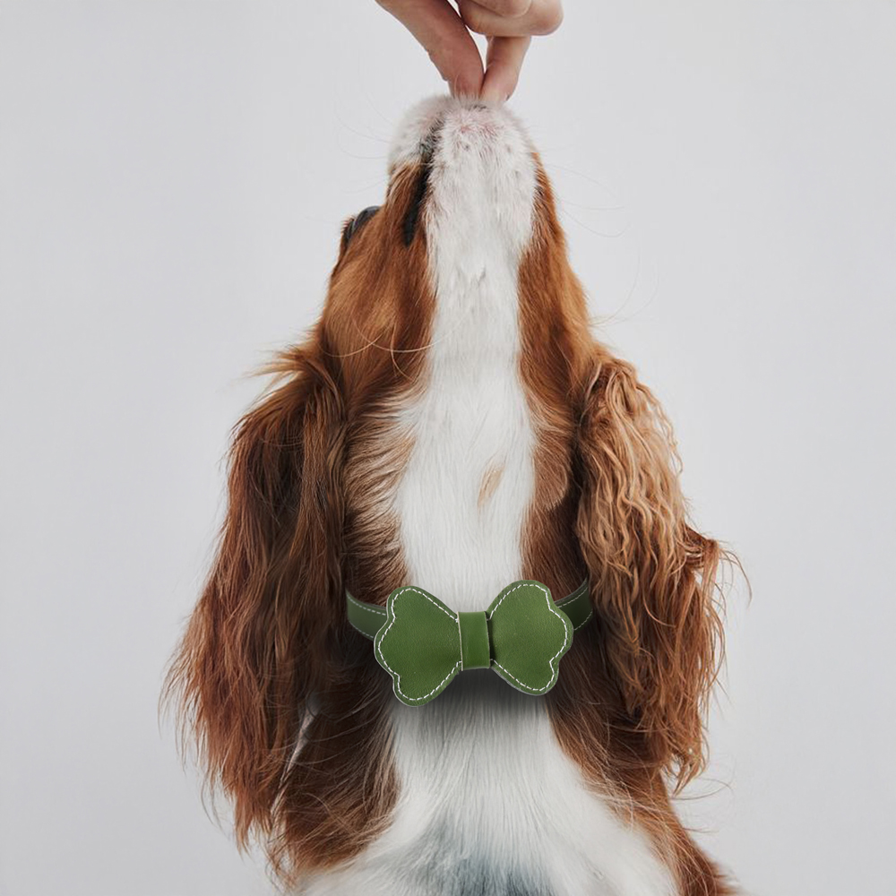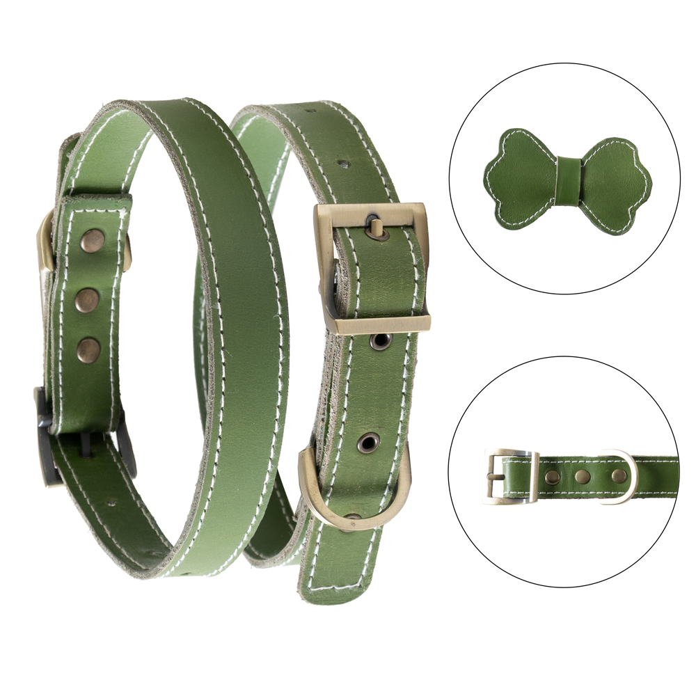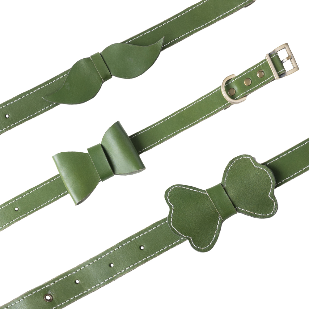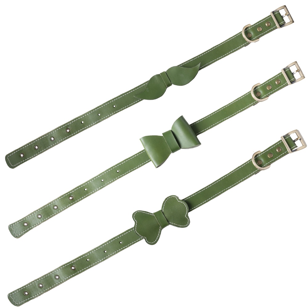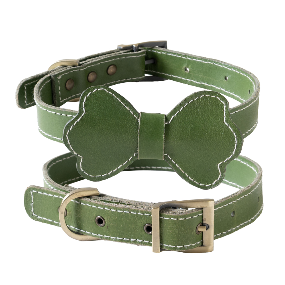 El Yapımı Hakiki Deri Fiyonk Figürlü Köpek Boyun Tasması – Yeşil | Sürdürülebilir Üretim