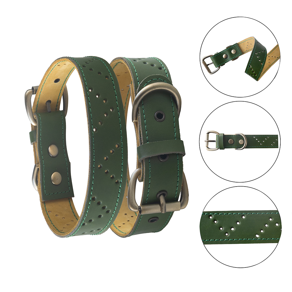 El Yapımı Hakiki Deri Köpek Boyun Tasması – Yeşil | Sürdürülebilir Üretim