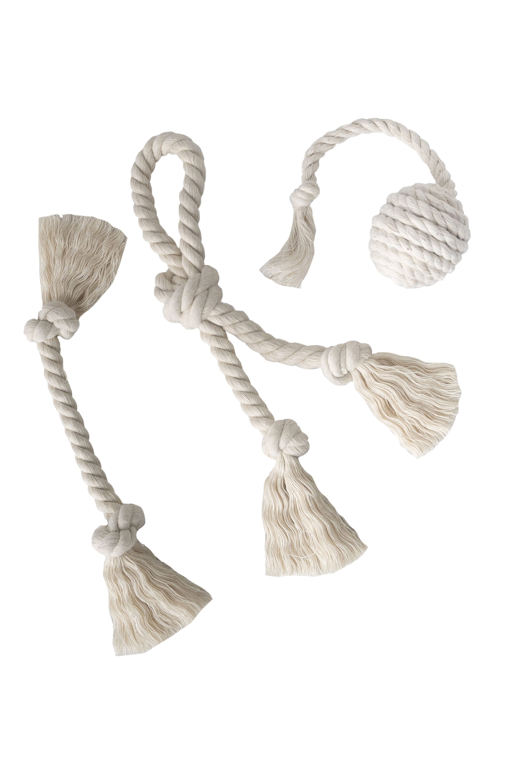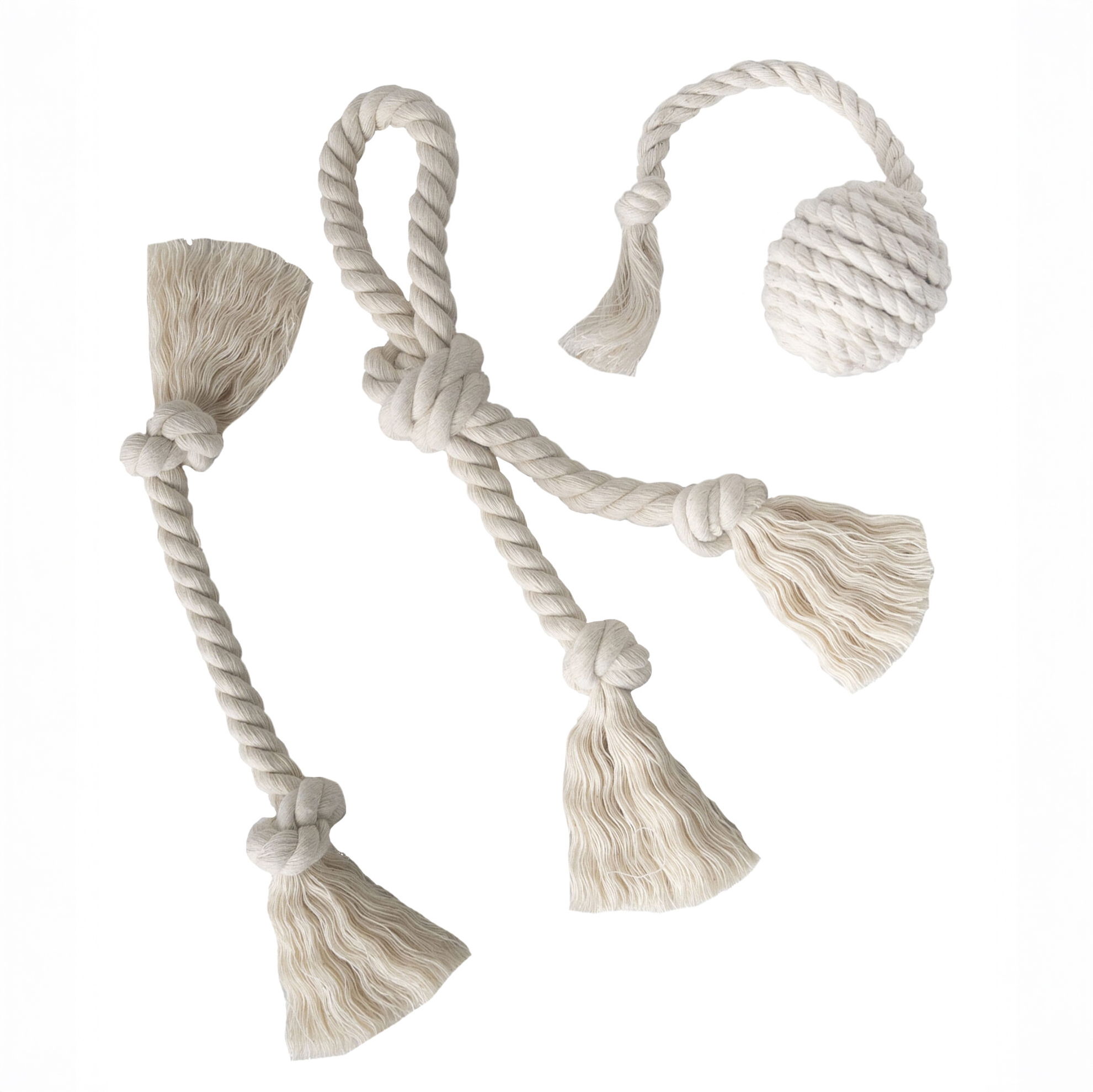 Sevimli dostunuz için sağlıklı, güvenilir ve eğlenceli bir seçim olan Doğal Pamuk Halat Kedi Köpek Oyuncak Seti ile oyun saatleri artık daha keyifli
