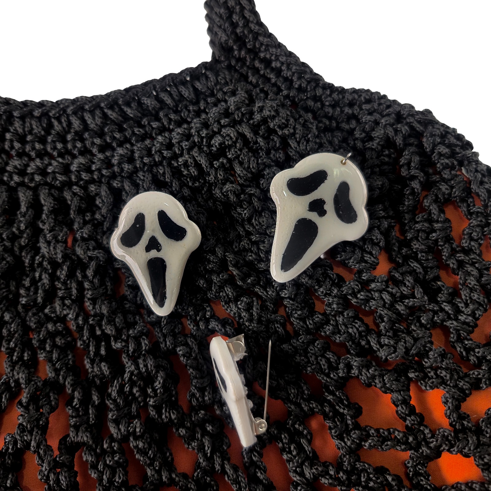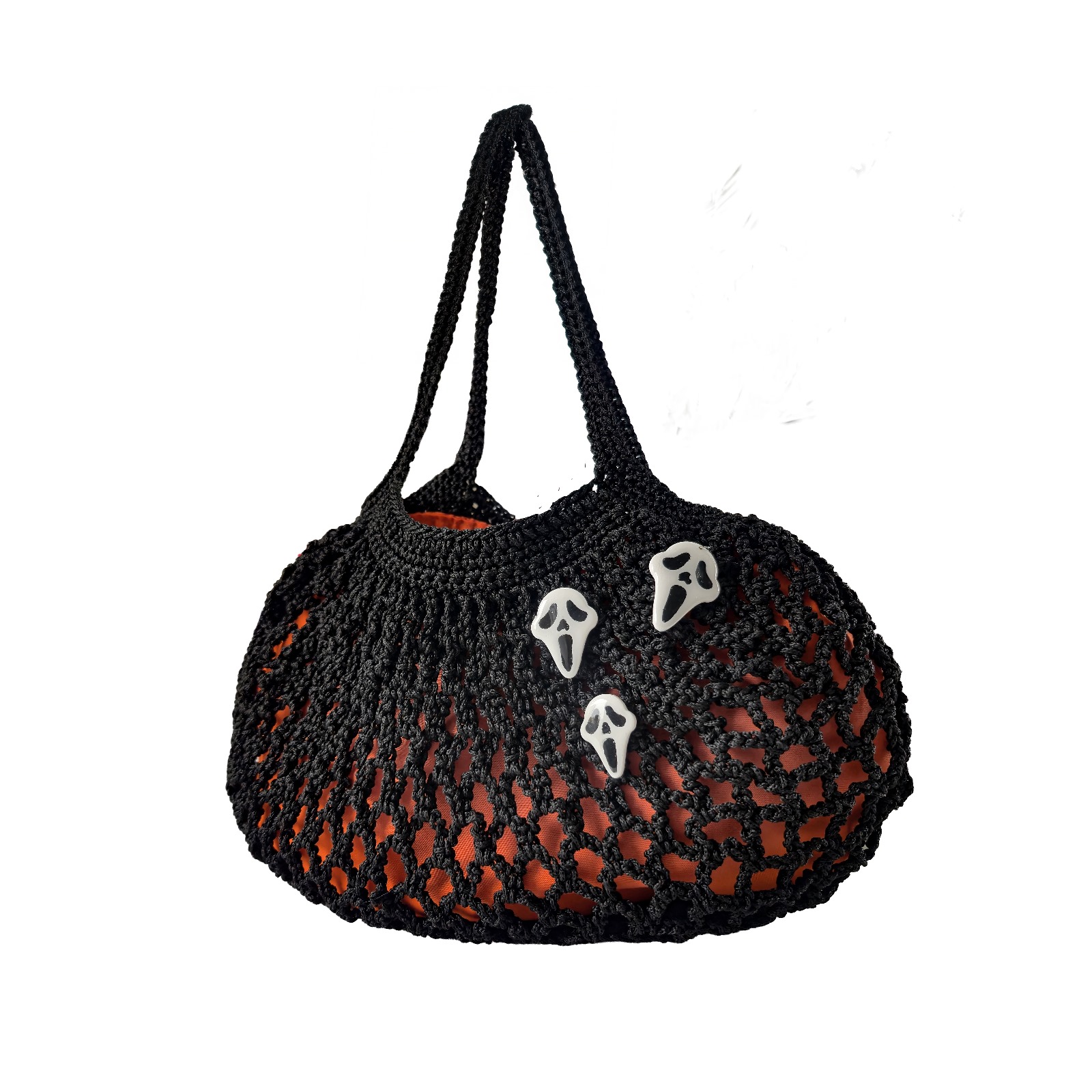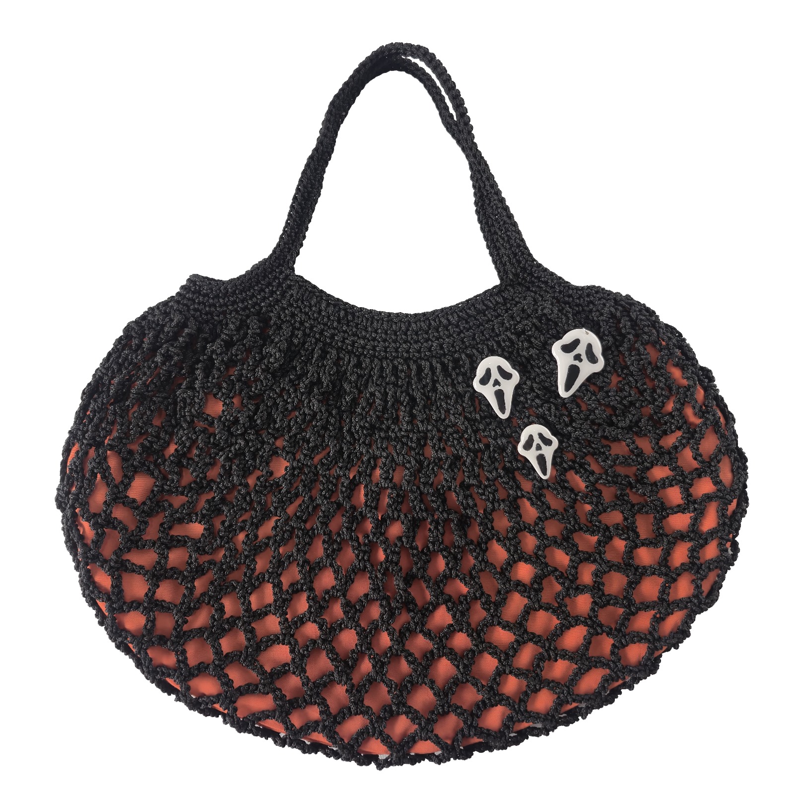El Örgüsü Halloween Çanta – Kil Hamuru Figürlü, Astar Detaylı; tamamı kadın emeğiyle, el örgüsü tekniğiyle üretilmiş özel bir tasarımdır.
