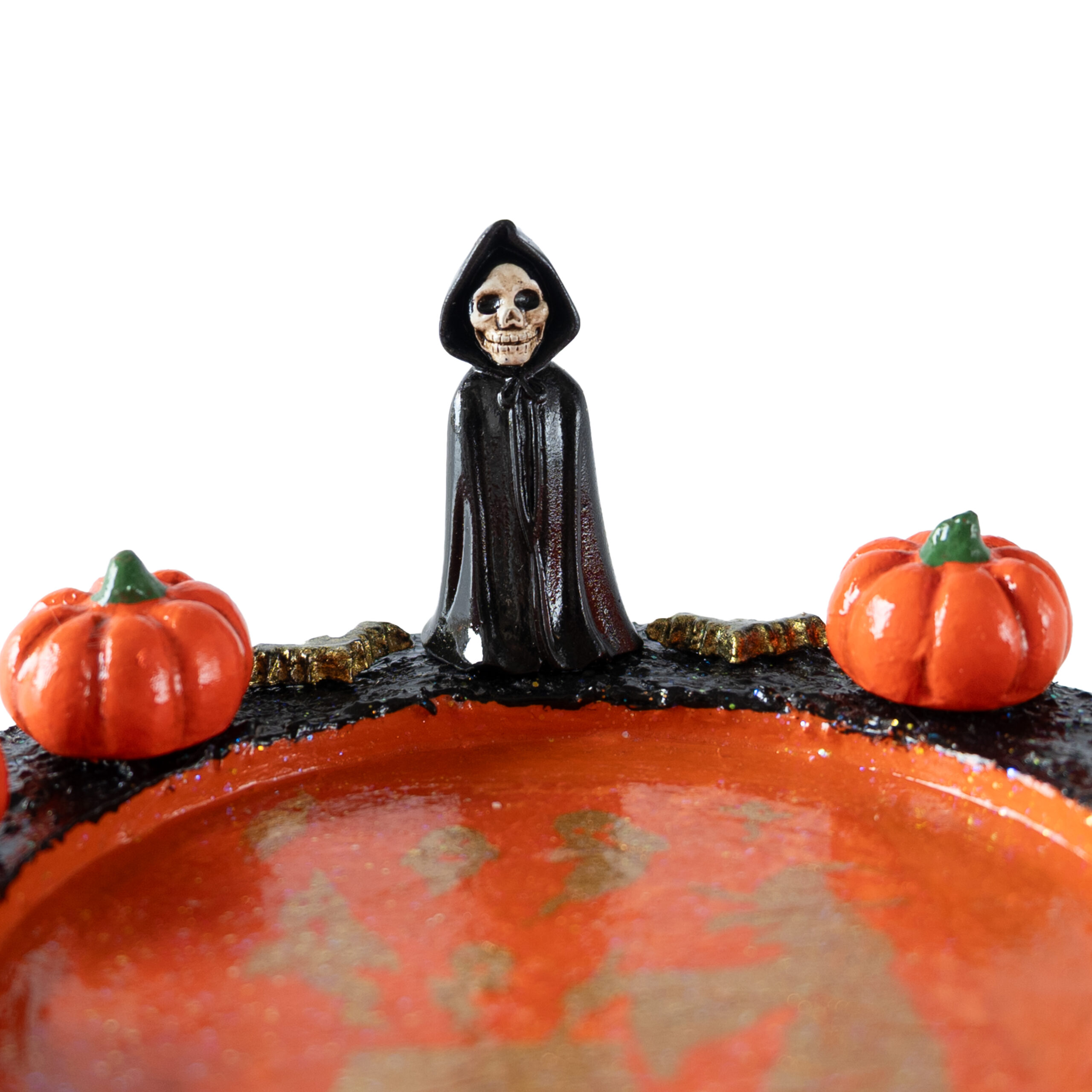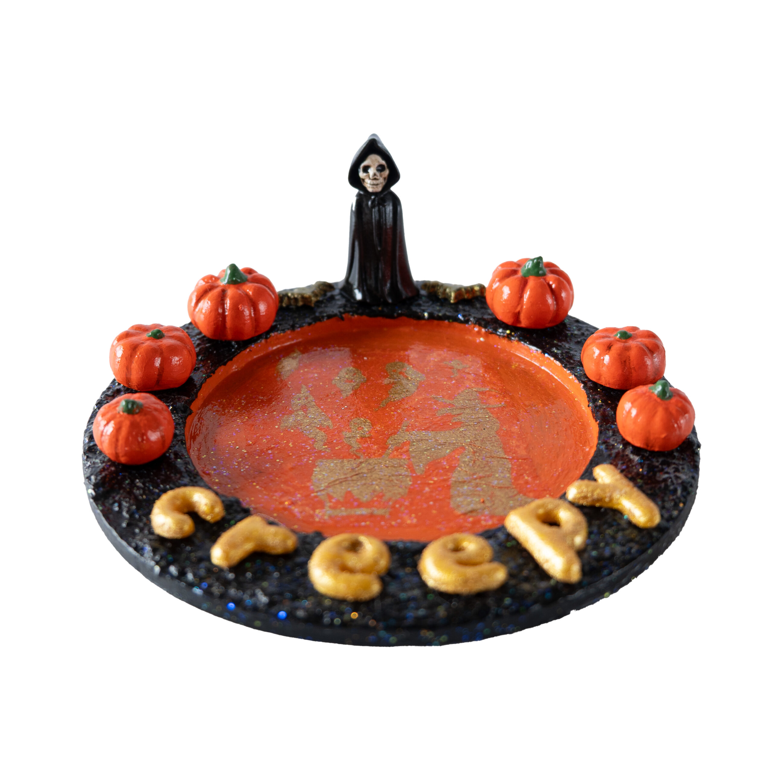 Halloween atmosferinizi daha da büyüleyici kılacak bu özel tasarım mumluk, ahşap zemin üzerine tamamen el emeğiyle şekillendirilmiş kil objeler ve ahşap boyama teknikleri kullanılarak hazırlanmıştır. Kadın istihdamını ve el işçiliğini destekleyen bu tasarım, her bir detayında emek ve özen barındırır. Şık tasarımıyla evinizin dekoruna farklı bir ruh katarken, beraberinde gönderilecek mum ile kullanıma hazır bir şekilde sizlere ulaşır.