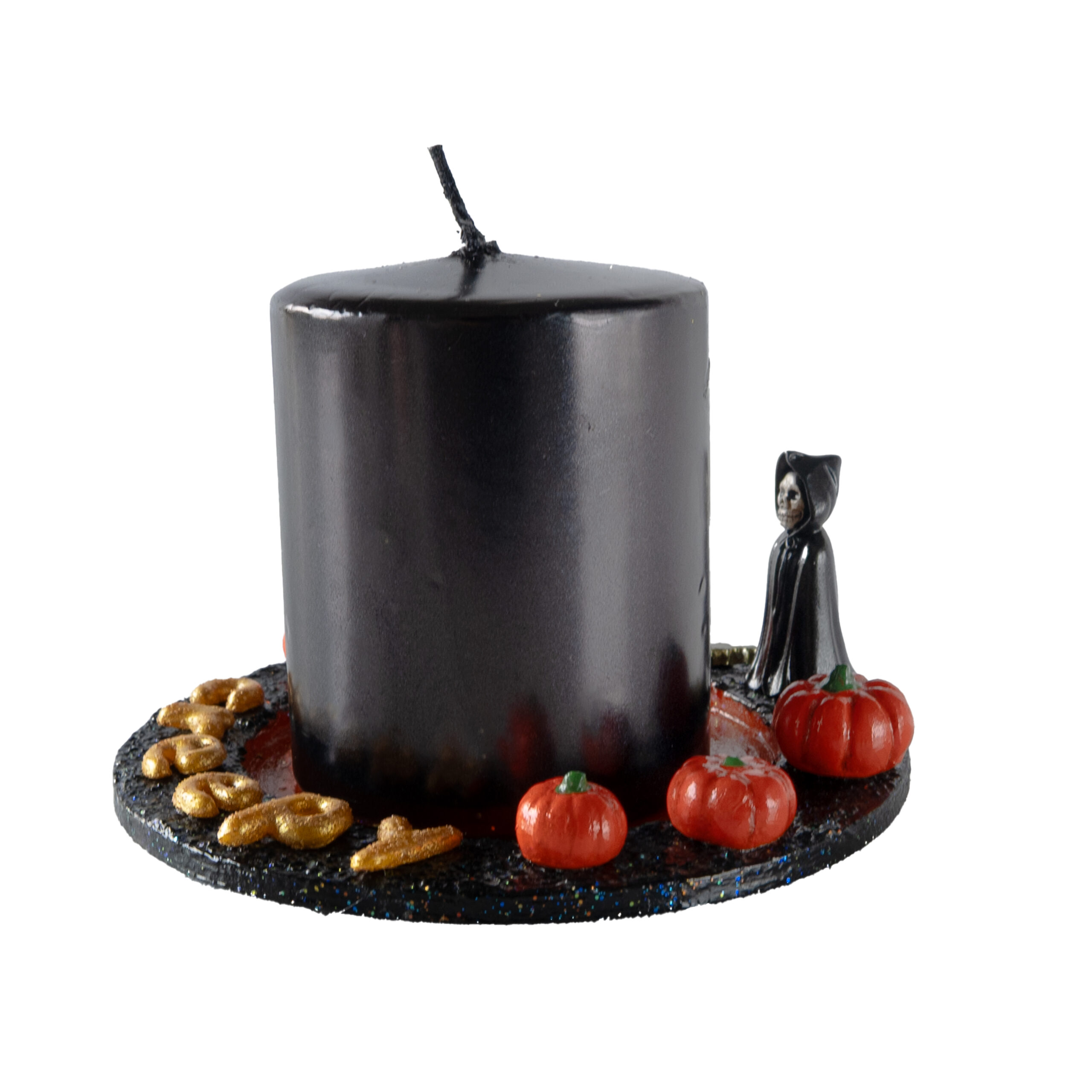 Halloween atmosferinizi daha da büyüleyici kılacak bu özel tasarım mumluk, ahşap zemin üzerine tamamen el emeğiyle şekillendirilmiş kil objeler ve ahşap boyama teknikleri kullanılarak hazırlanmıştır. Kadın istihdamını ve el işçiliğini destekleyen bu tasarım, her bir detayında emek ve özen barındırır. Şık tasarımıyla evinizin dekoruna farklı bir ruh katarken, beraberinde gönderilecek mum ile kullanıma hazır bir şekilde sizlere ulaşır.