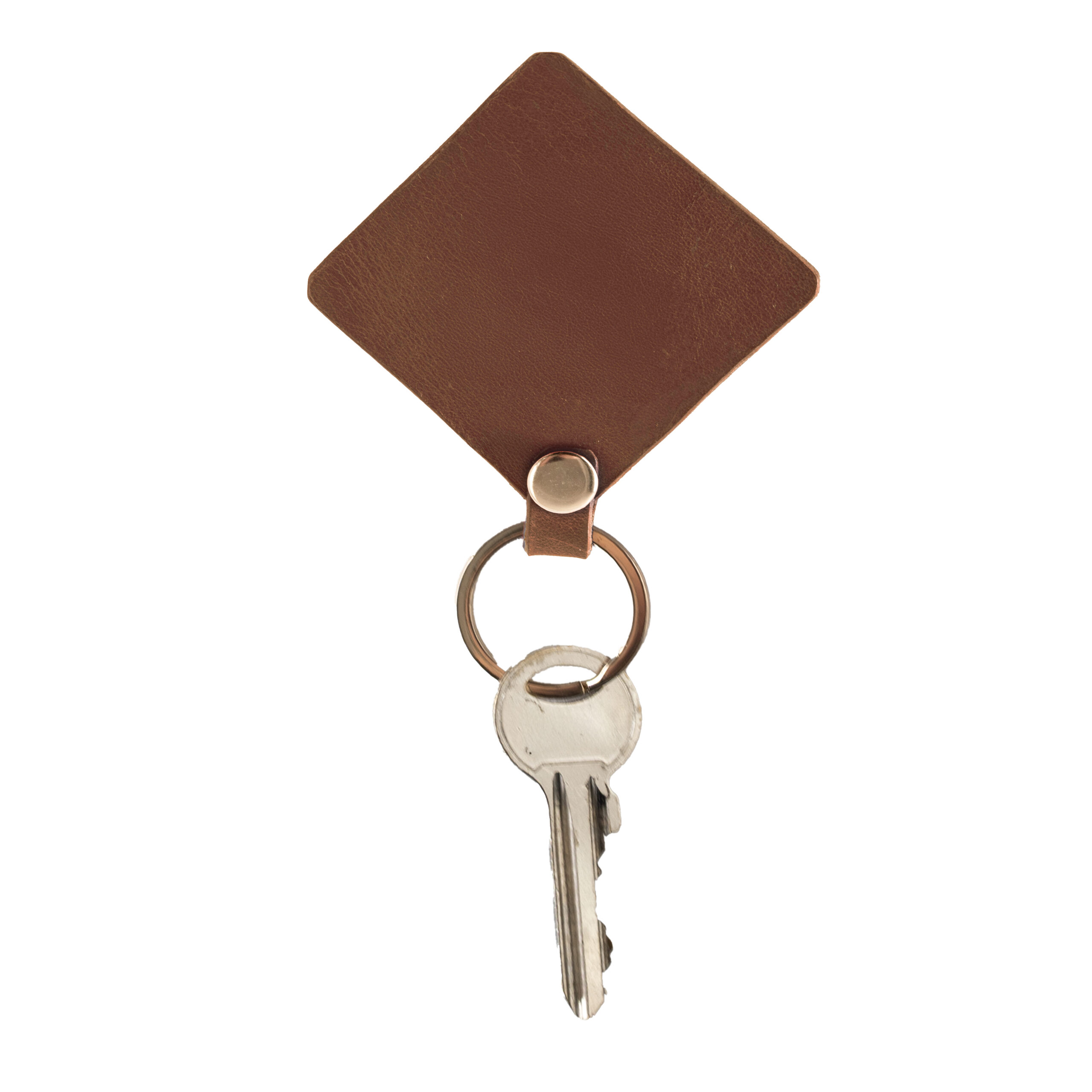 El Yapımı Hakiki Deri Kahverengi Kare Anahtarlık – Sürdürülebilir Üretim