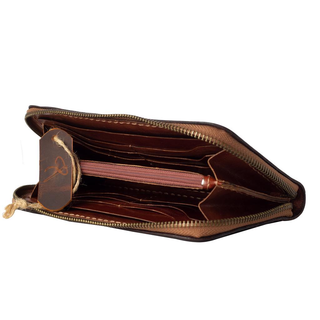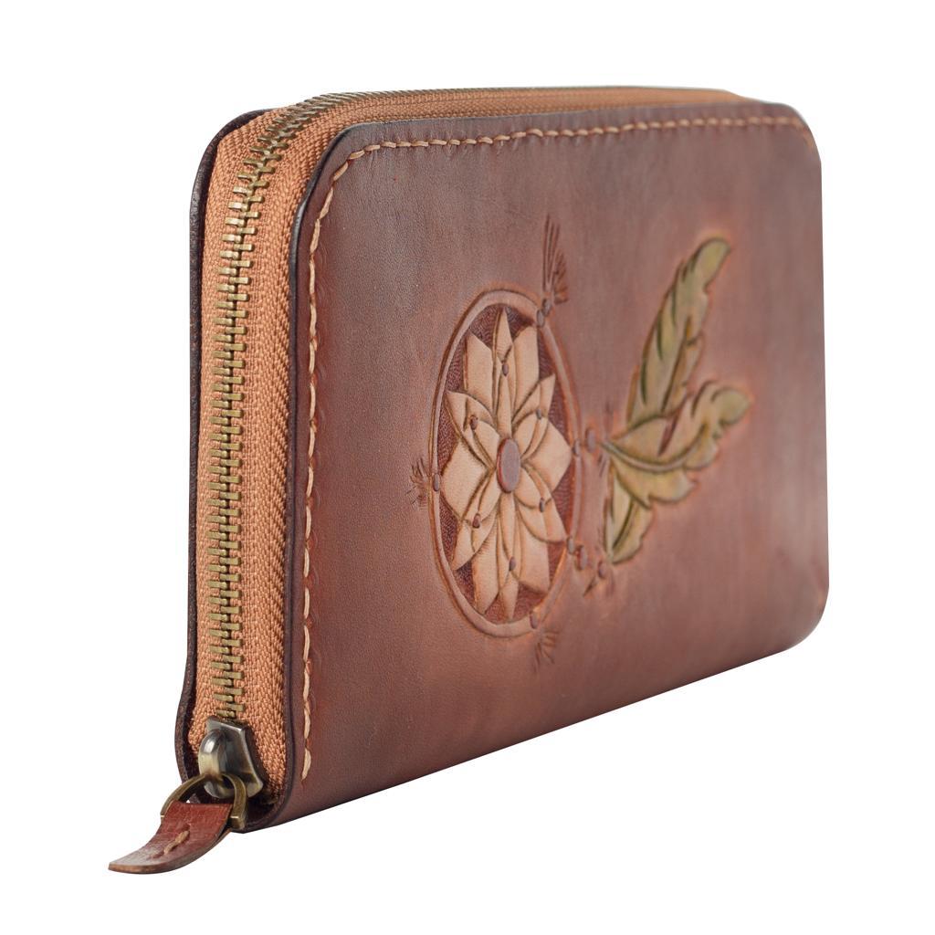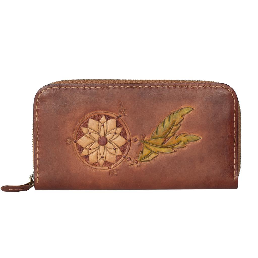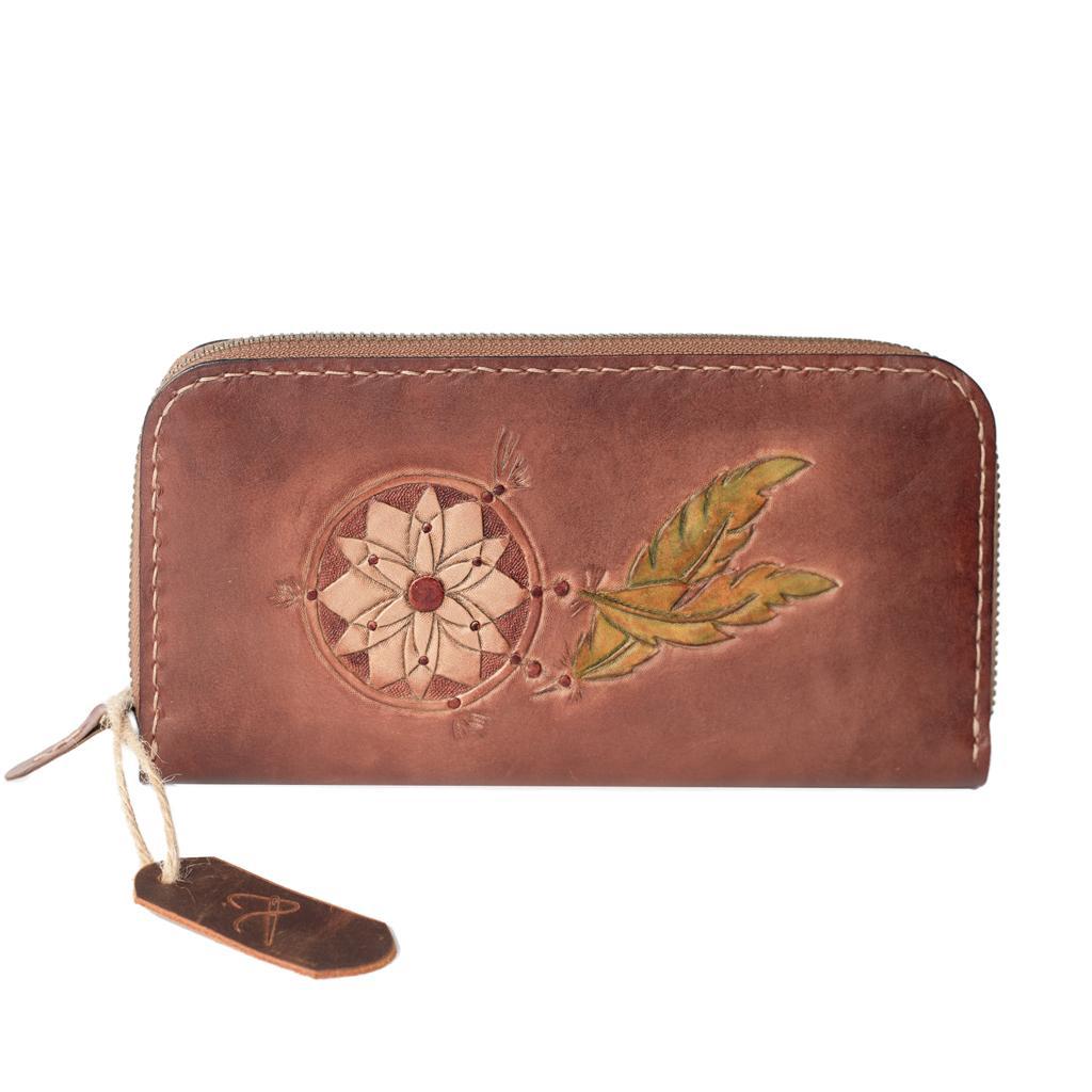 El Yapımı Hakiki Kösele Deri Kadın Cüzdan – Dream Catcher Motifli – Sürdürülebilir Üretim