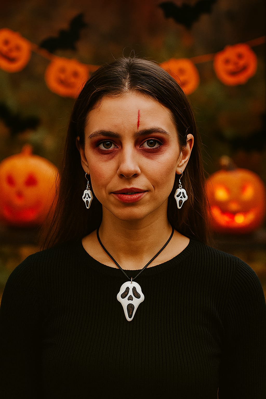 El Yapımı Halloween Küpe Kolye Seti – Hayalet Model
