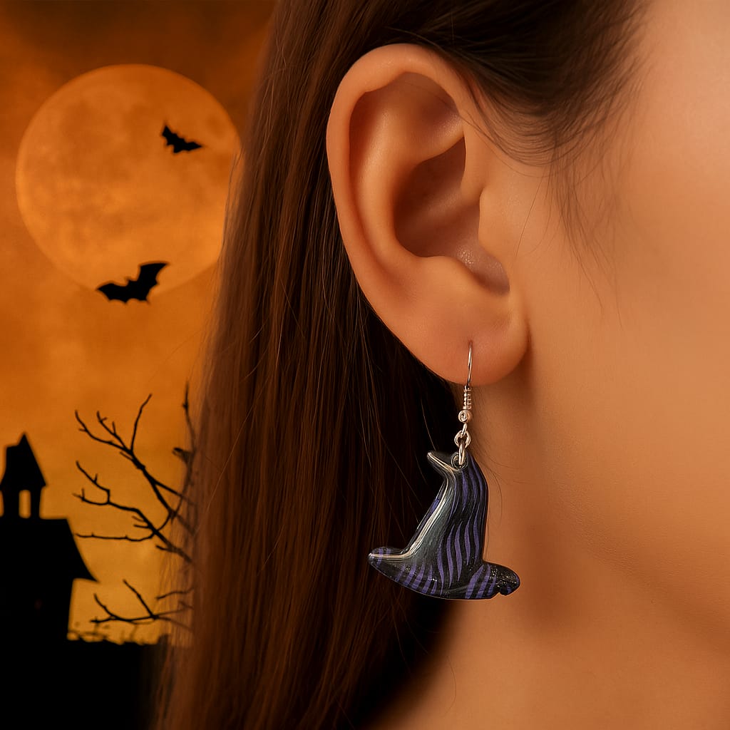 El Yapımı Halloween Küpeleri – Cadı Şapkası Model