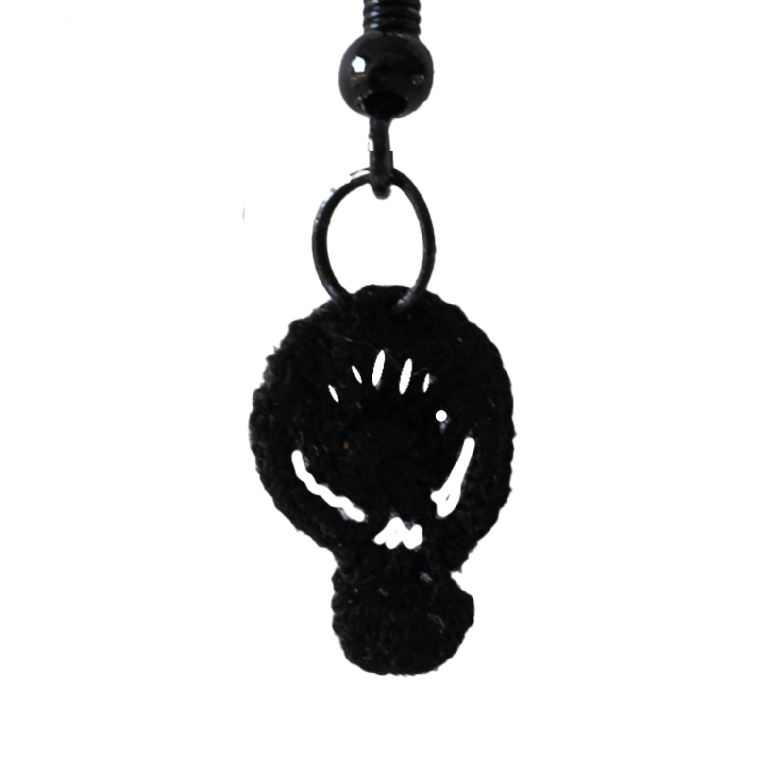 Halloween ruhunu taşıyan bu Kurukafa Mikro Crochet Küpe Çifti, tamamen el işçiliği ile üretilmiştir. Her bir kurukafa motifi, sabır ve incelik gerektiren micro crochet tekniği kullanılarak işlenmiştir. Siyahın asaletiyle birleşen bu özel tasarım, hem günlük kombinlerinize hem de temalı partilere özgün bir dokunuş katar.
