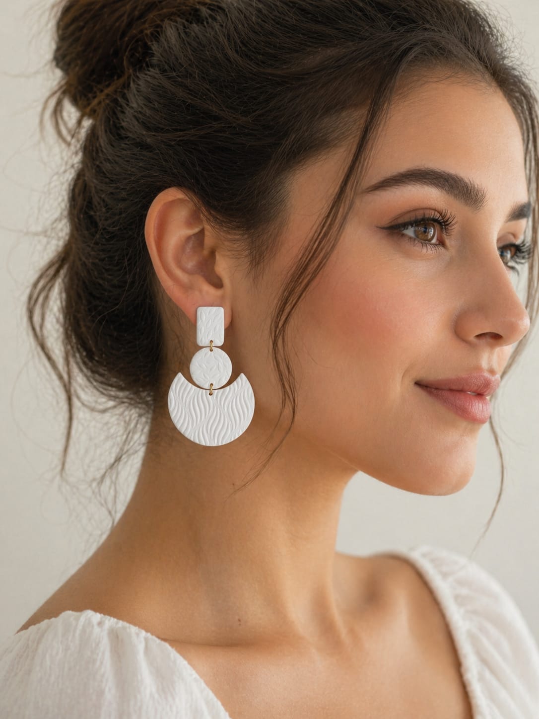 El Yapımı Üçlü Geometrik Şekil Sallantılı Polimer Kil Küpe