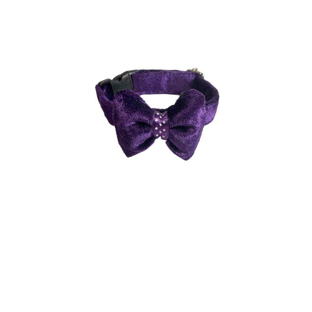 Halloween Kadife Kedi Tasması – Mor Papyon