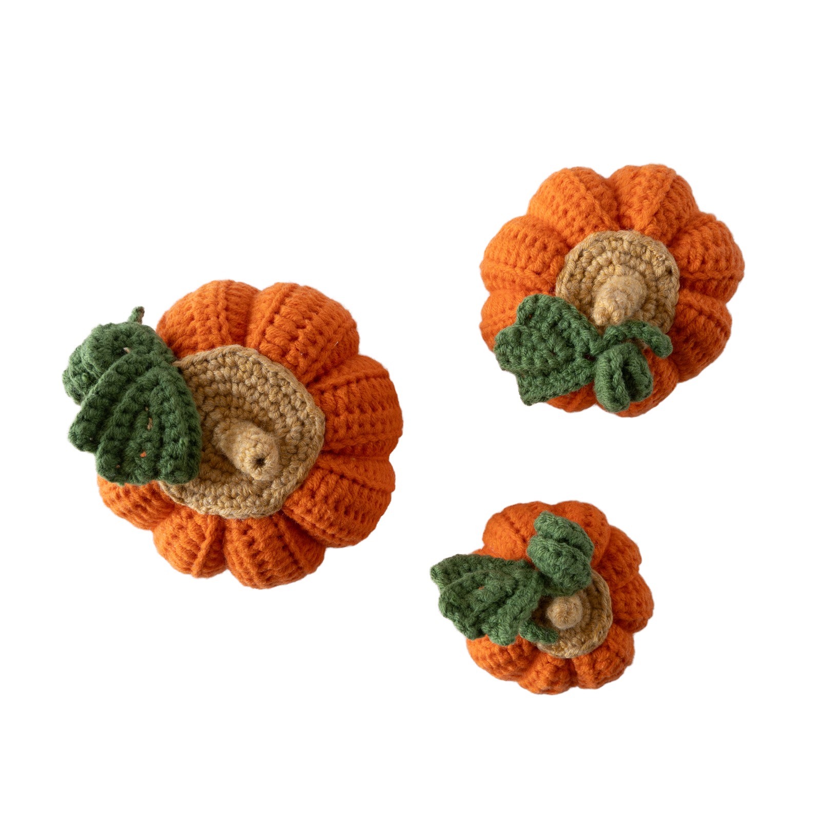 Halloween Konsept 3’lü Örgü Balkabağı Dekoratif Masa & Sehpa Objesi – El Yapımı, Elyaf Dolgulu