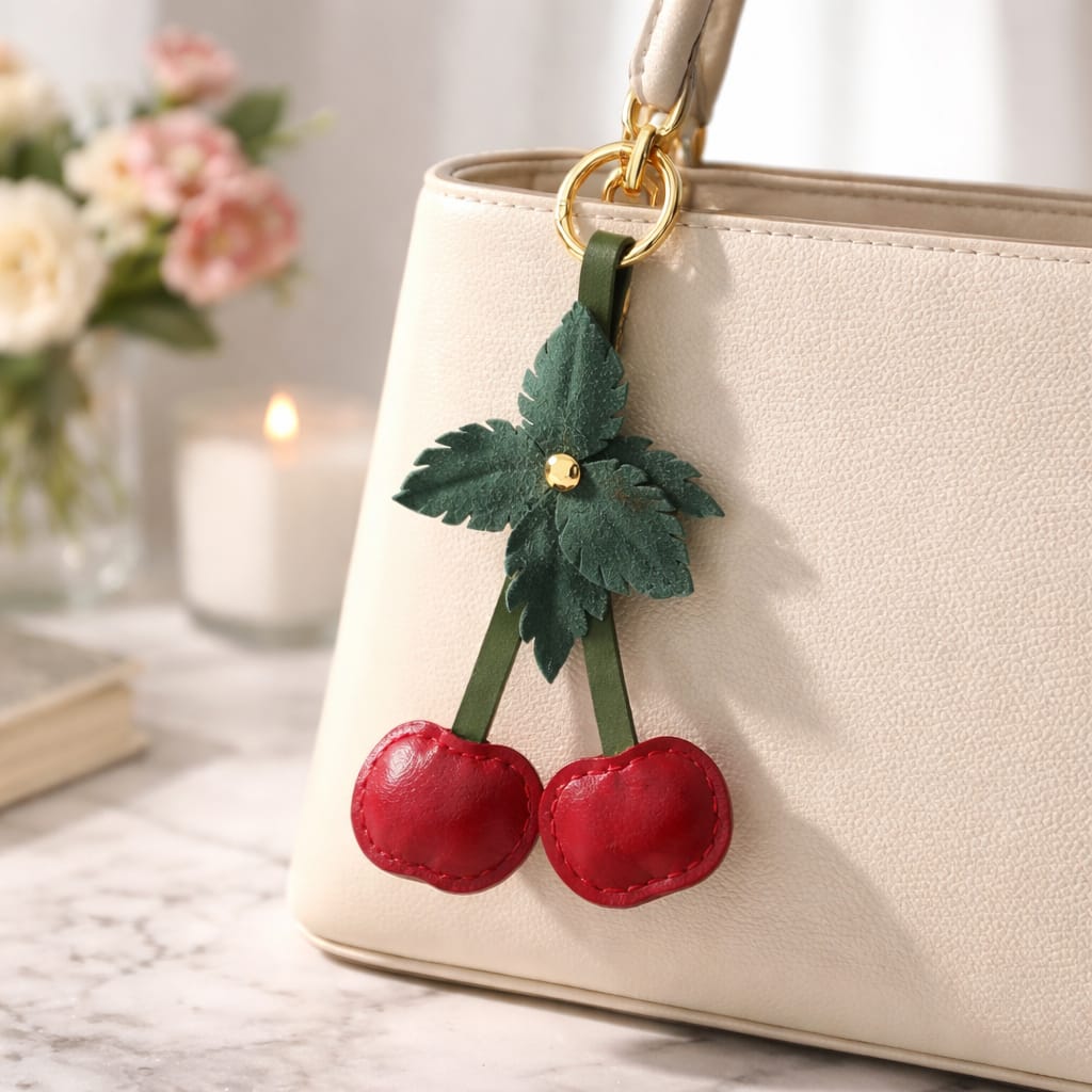 Sevgililer Günü’ne Özel Hakiki Deri Kiraz Çanta Charmı