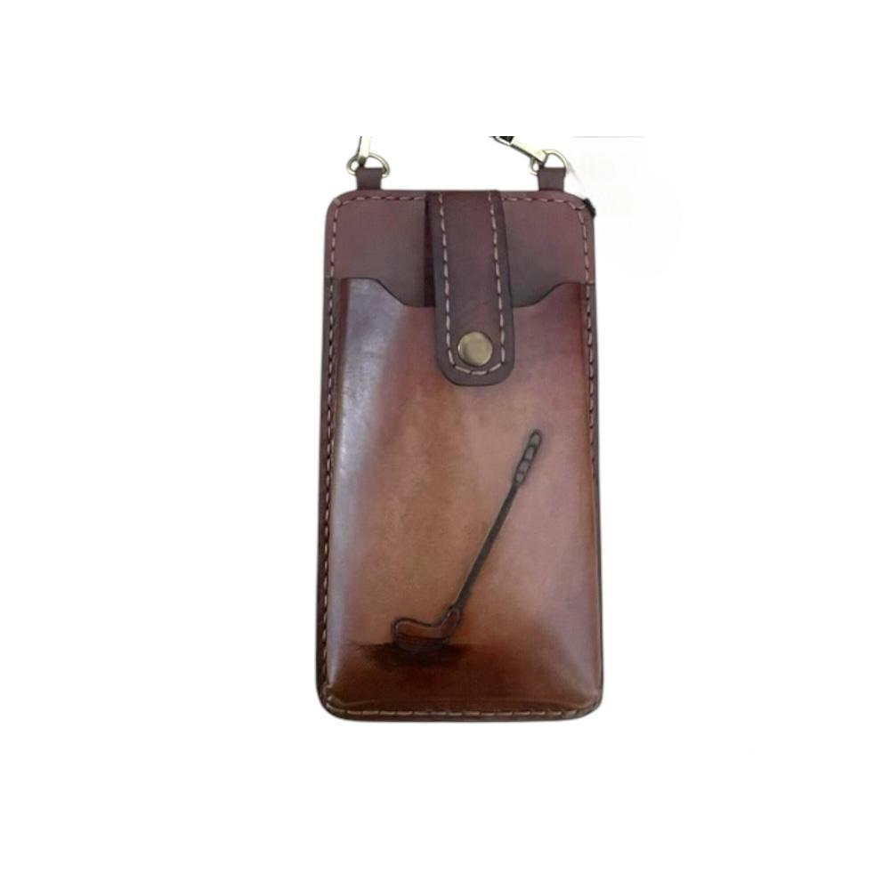 El Yapımı Hakiki Kösele Deri Kadın Telefon Cüzdan Çanta – Buz Hokeyi Sopası Figürlü – Sürdürülebilir Üretim
