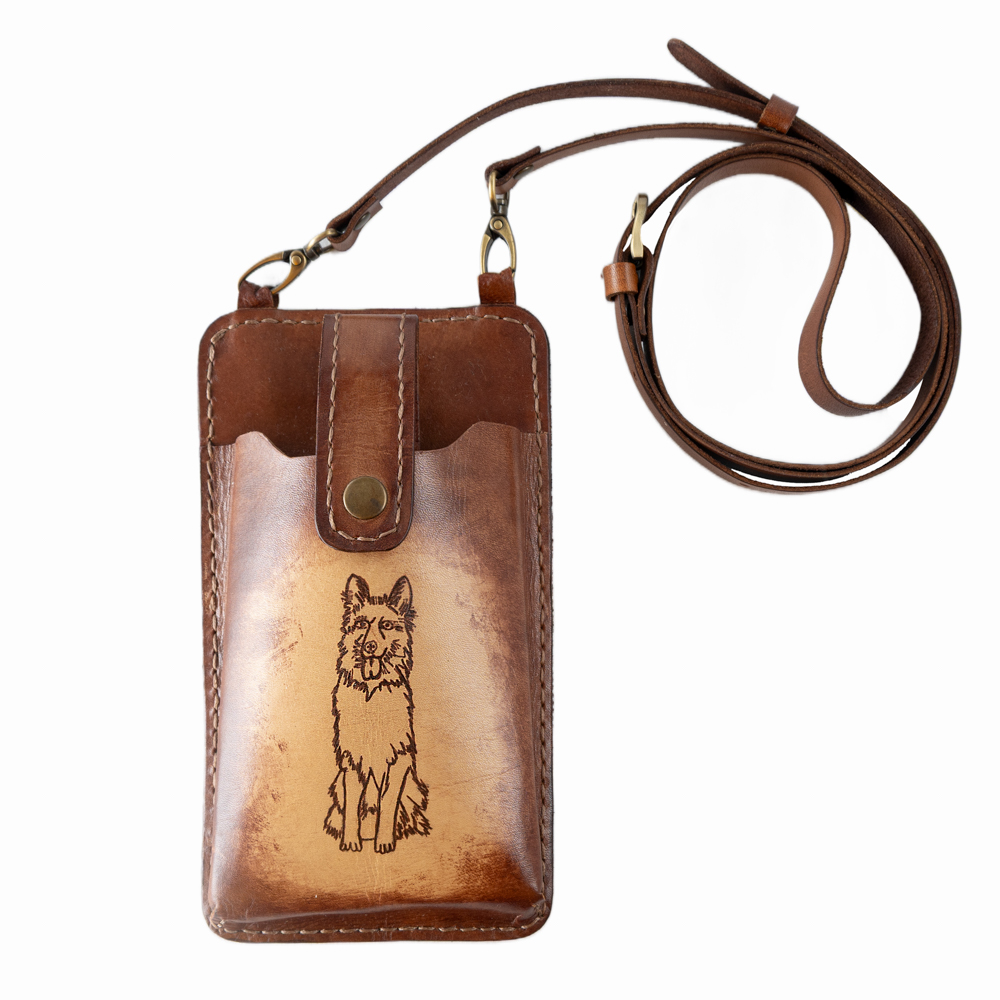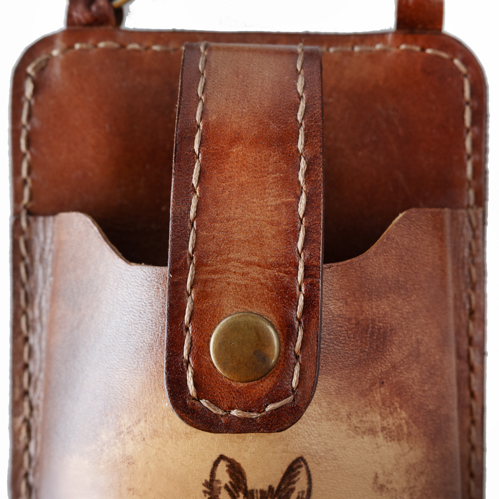 Ön yüzünde çıtçıtlı telefon bölmesi, arkada fermuarlı bölümü bulunan Kadın Hakiki Deri Telefon Cüzdan Çanta, eşyalarınızı güvenle taşımanızı sağlar. Köpek işlemesiyle detaylandırılan ön yüz, bohem bir tarz ve özgünlük sunar.