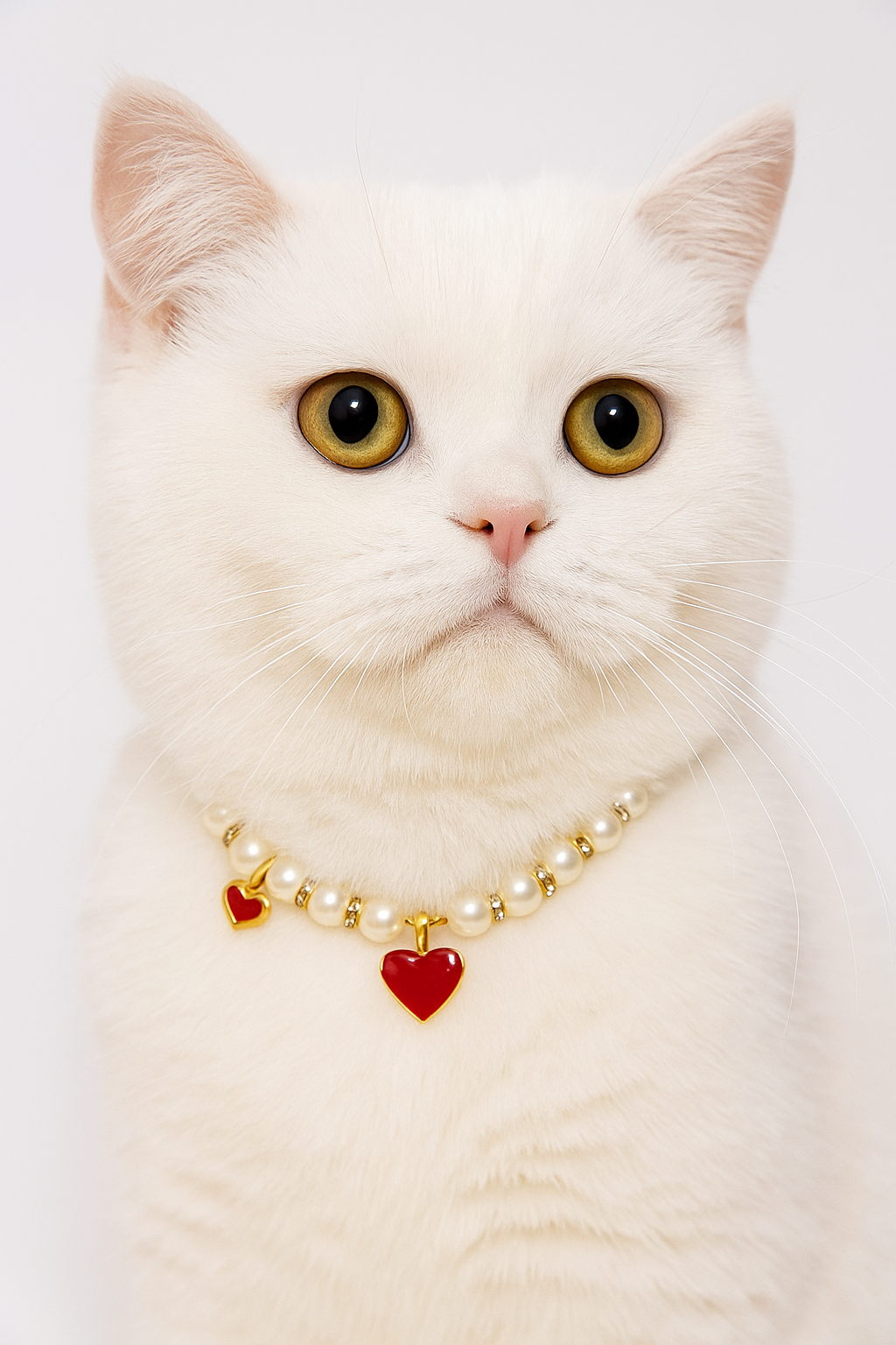 El Yapımı İnci ve Kalp Detaylı Kedi Kolyesi