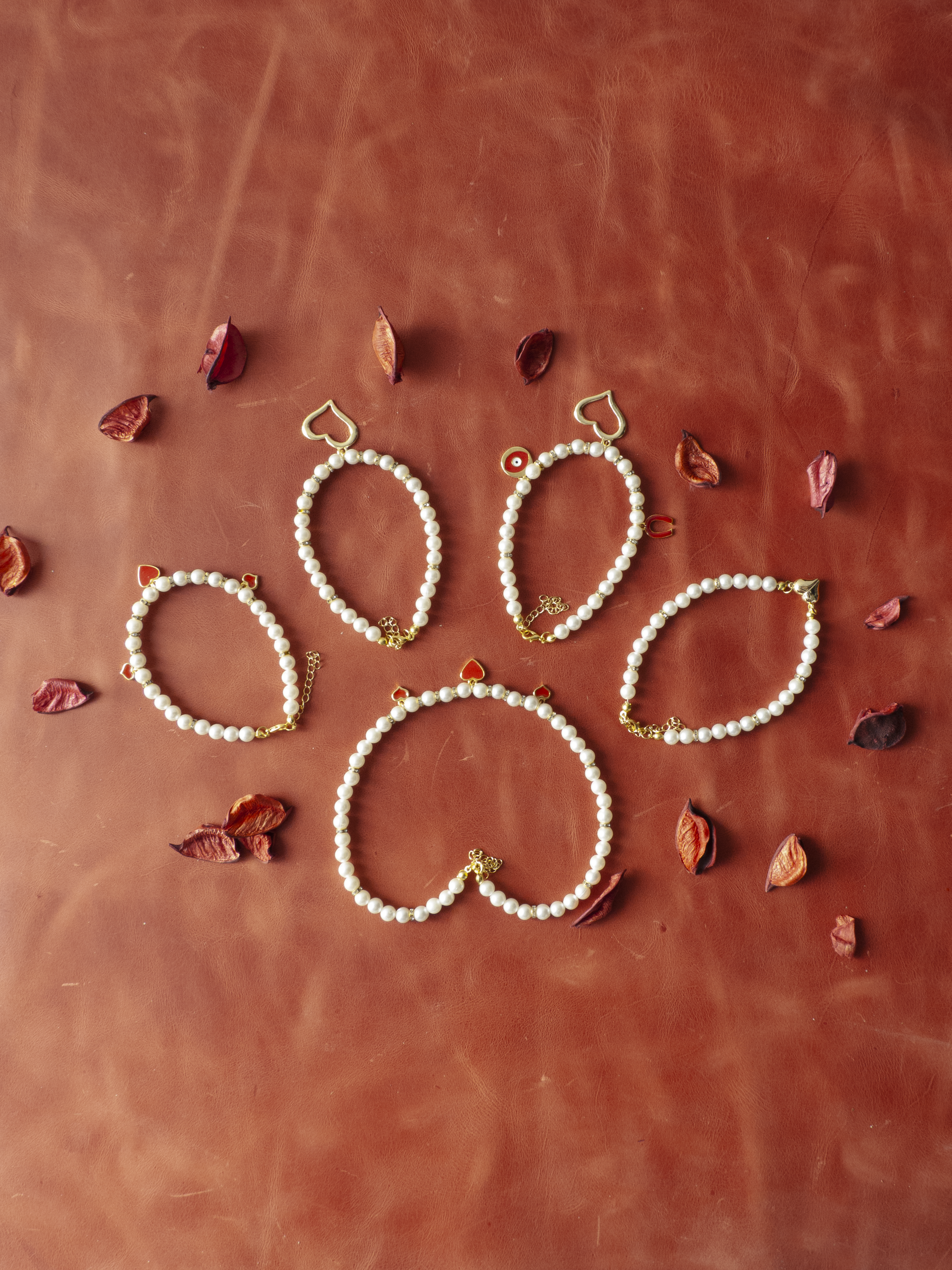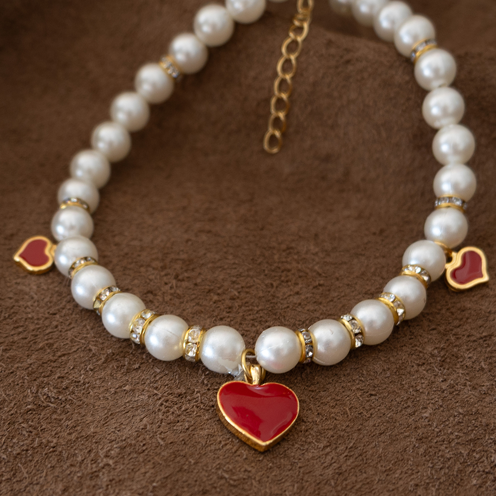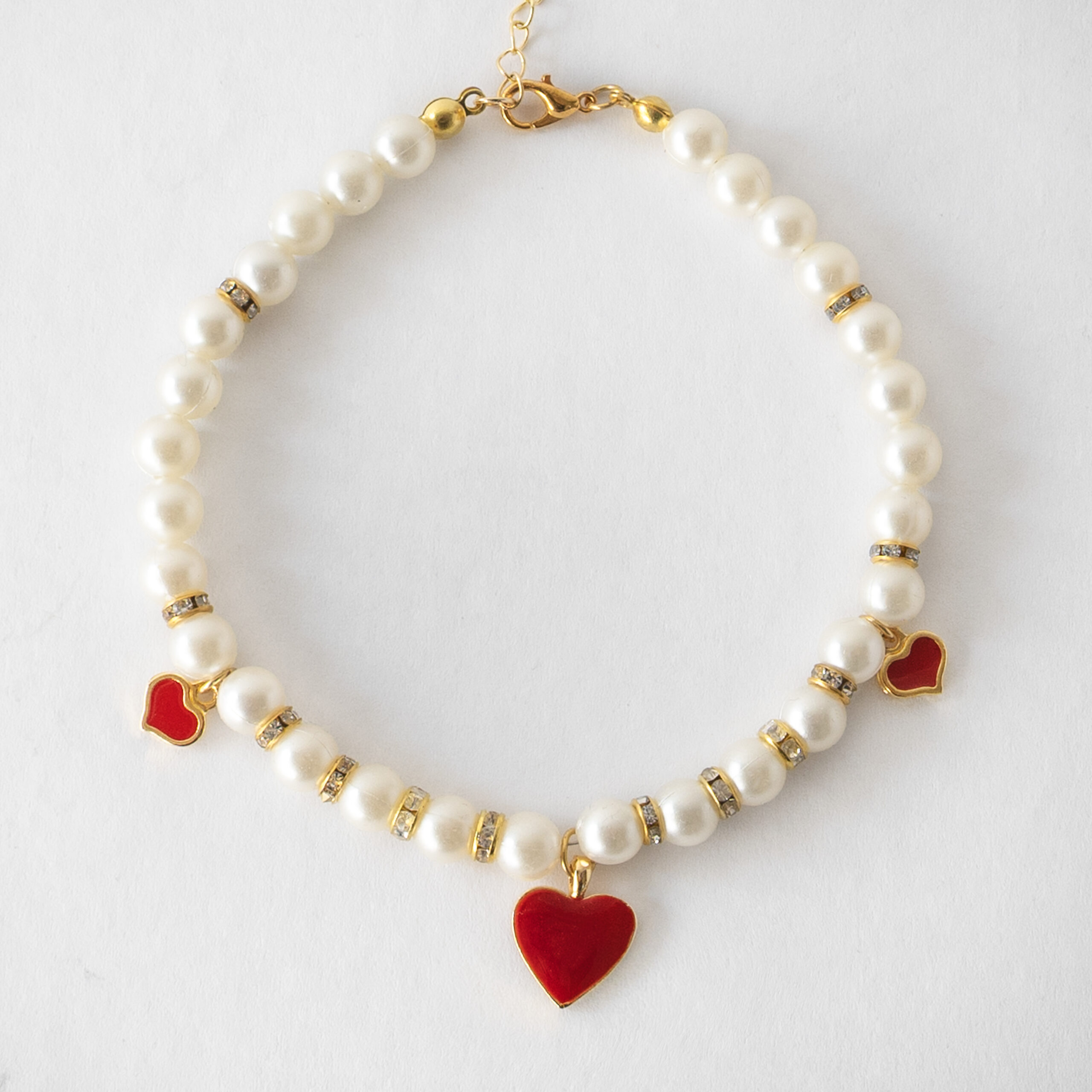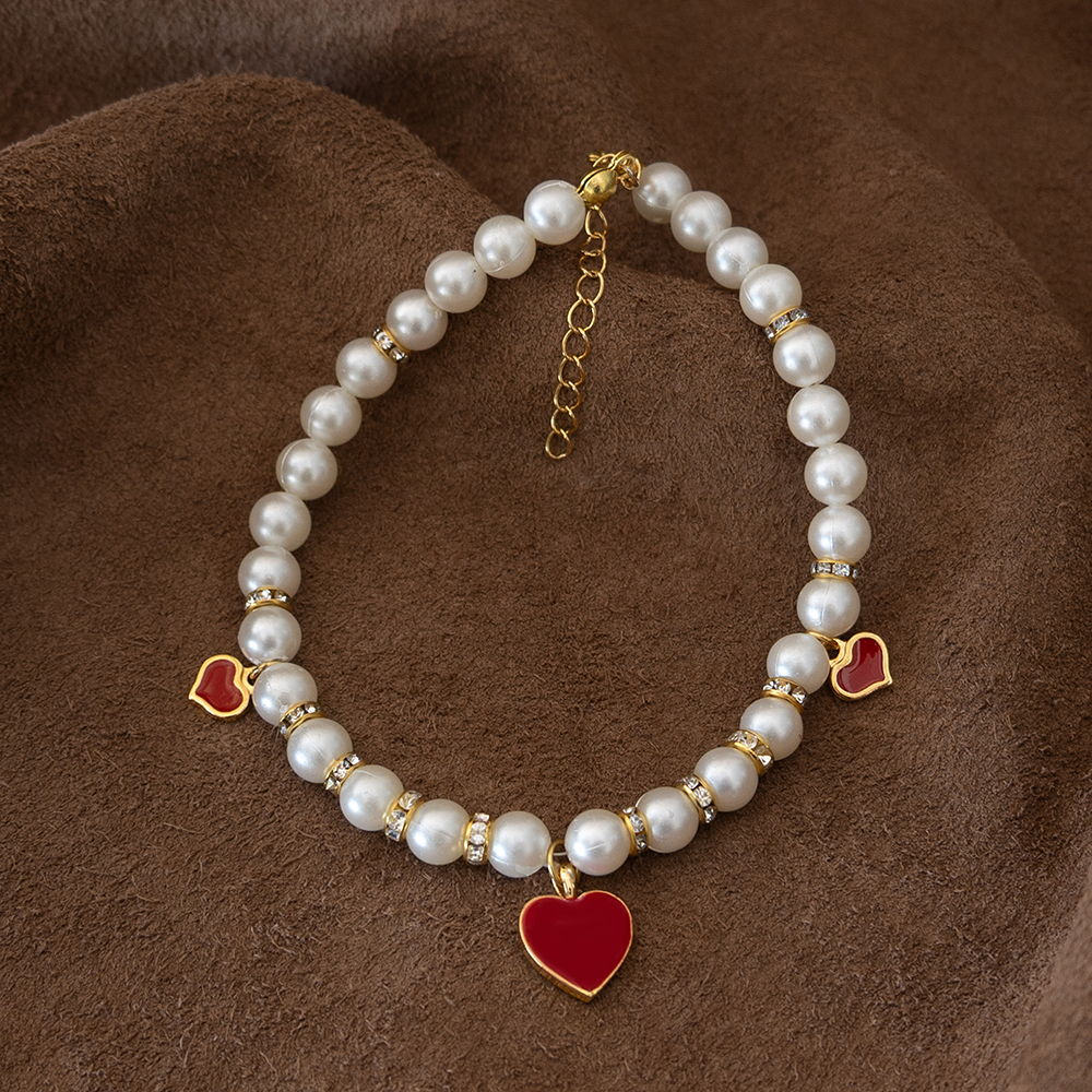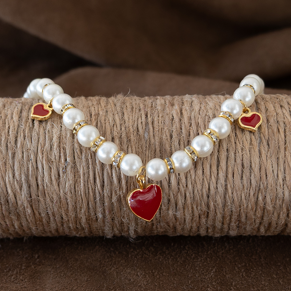 İnci ve metal kalp detaylarıyla zarif bir görünüm sunar.
