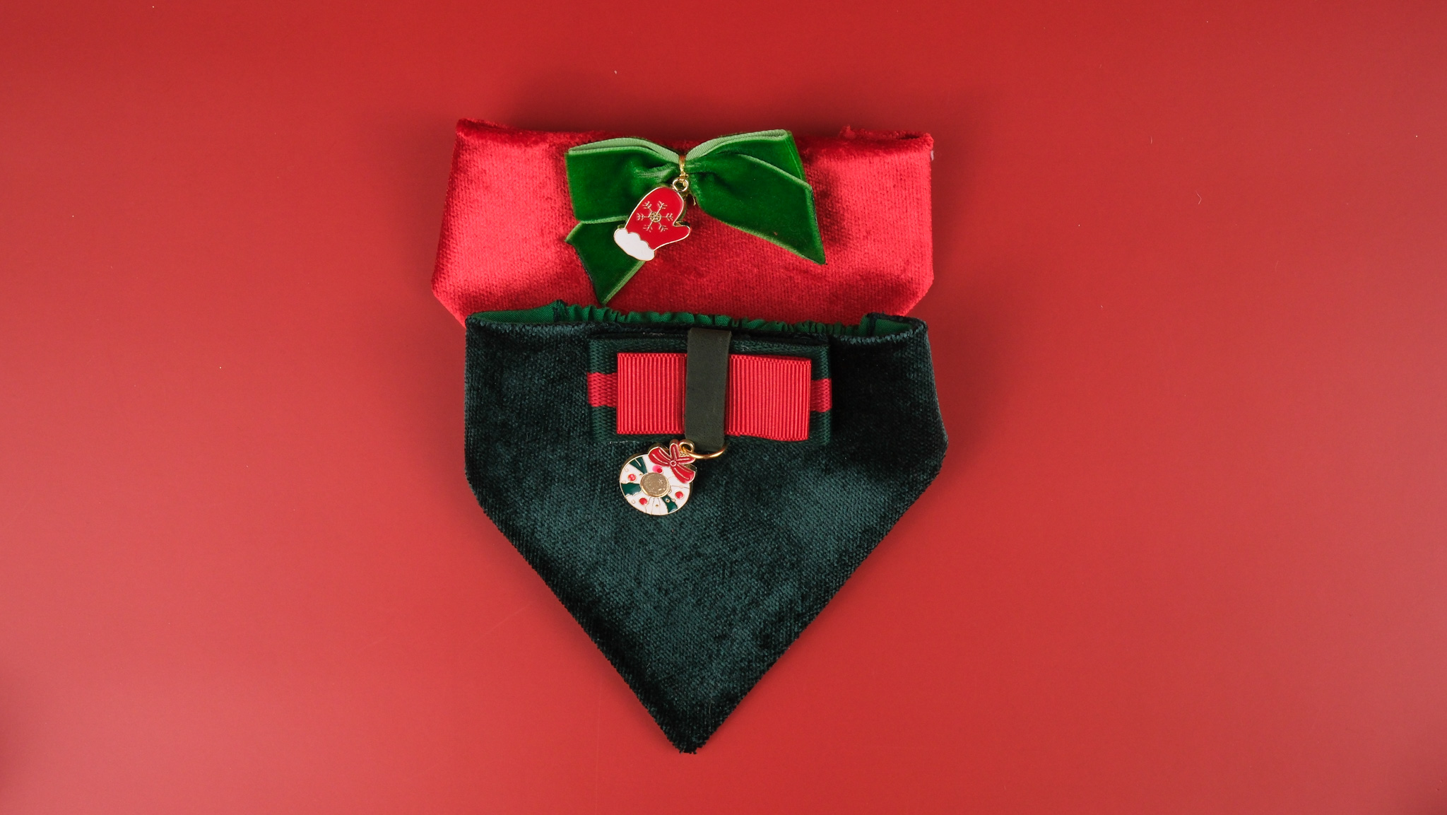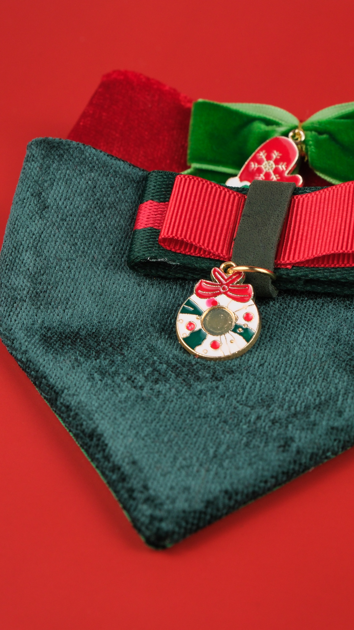 Yeni Yıl Özel Kedi Bandana Seti – Lastikli Kadife Kumaş | Rahat, Şık ve Festif Tasarım