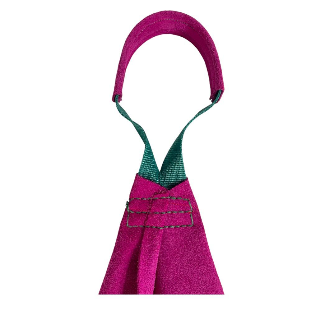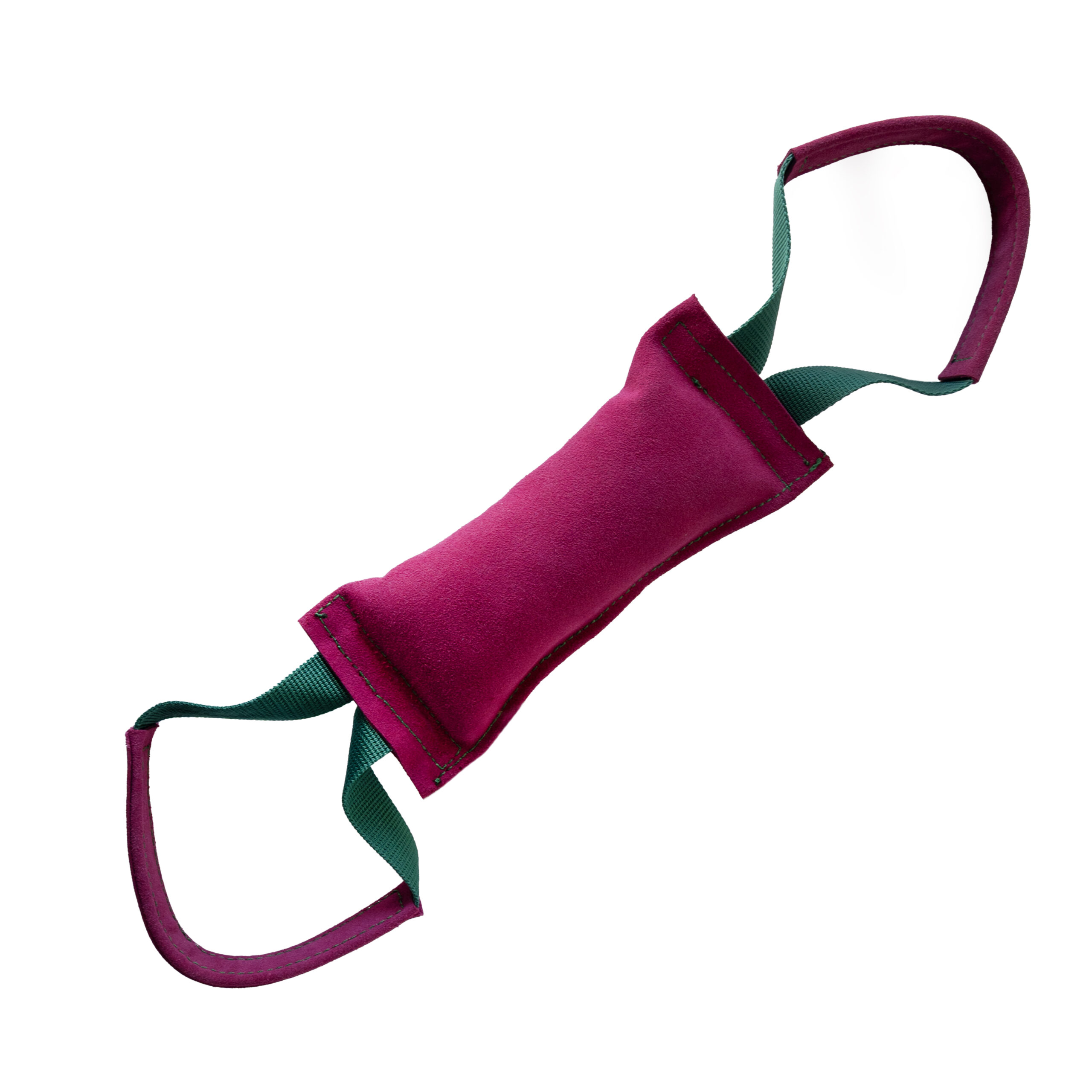 Köpek Oyuncak Isırma Yastığı; tutma kısımları dayanıklı tasma kolonundan yapılmış olup, ellerin acımasını önlemek amacıyla süet deri ile kaplanmıştır. 7*22cm ölçülerindedir.