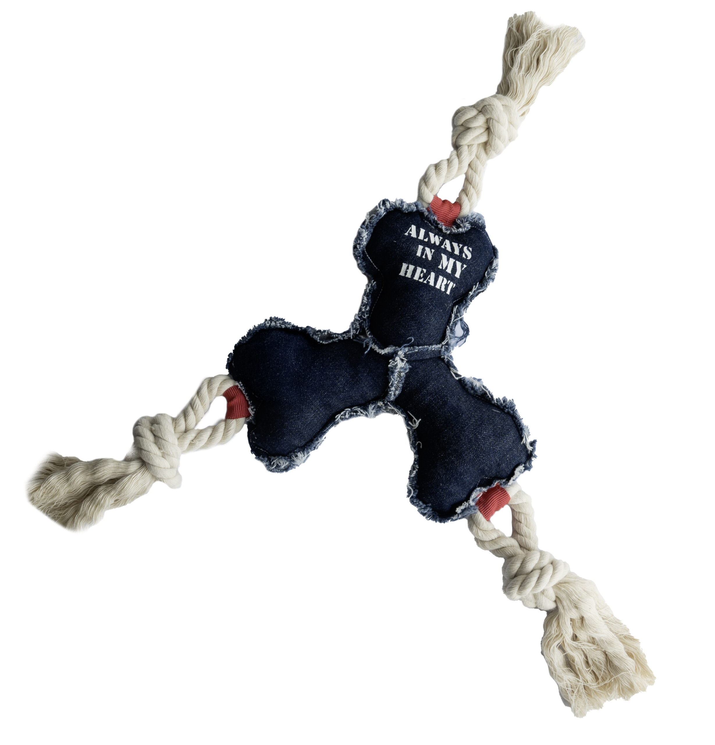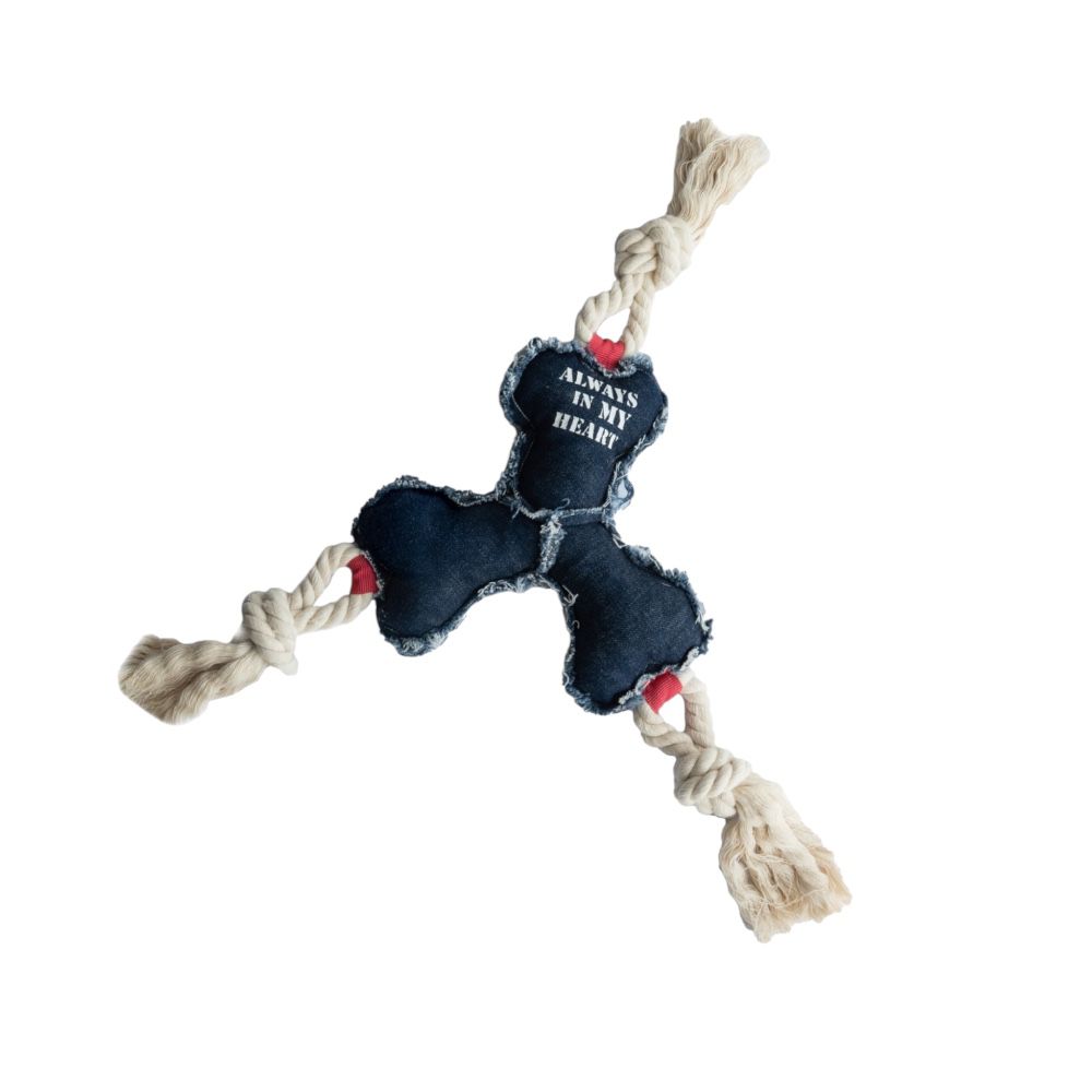 Denim Köpek Oyuncağı – Elyaf Dolgulu, Pamuk Halatlı Dayanıklı Oyuncak