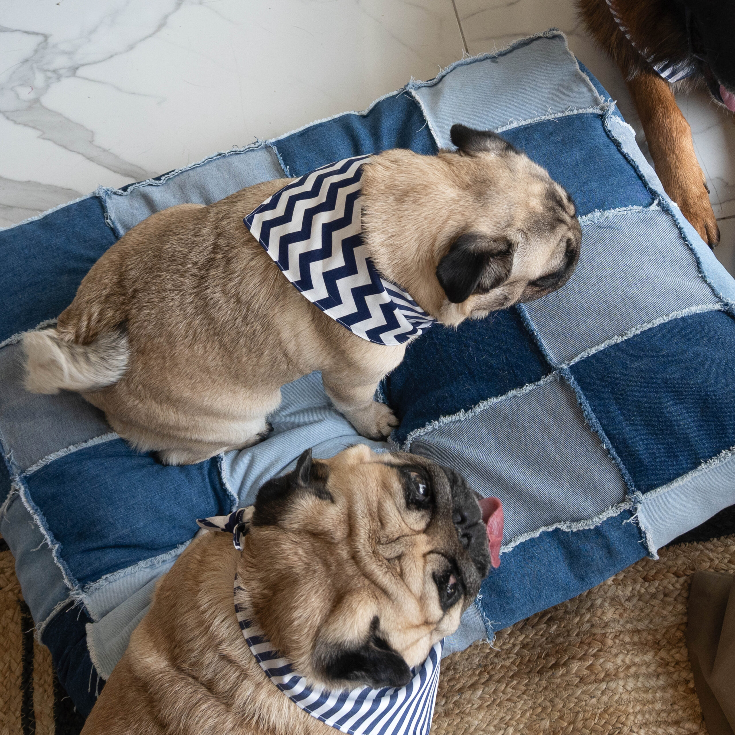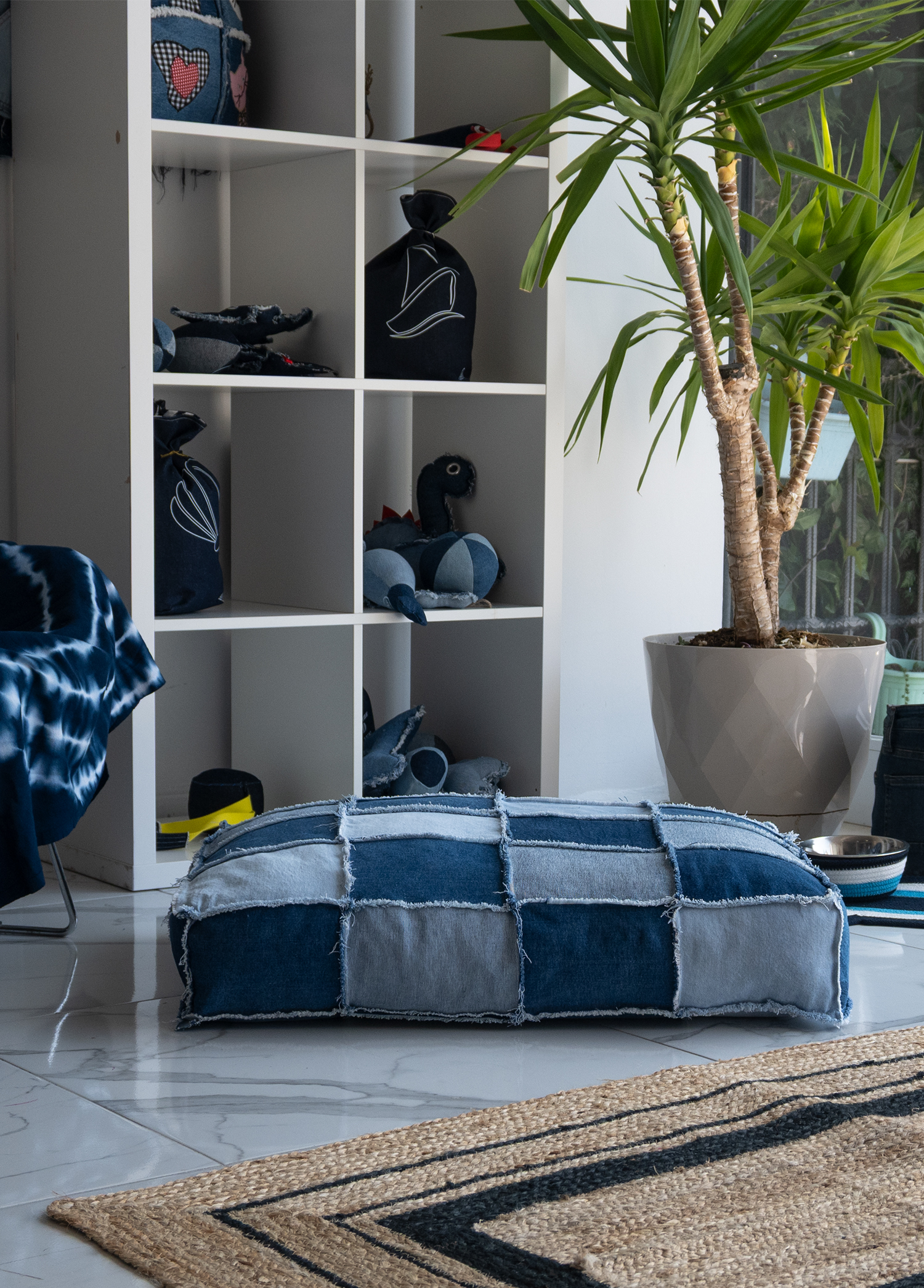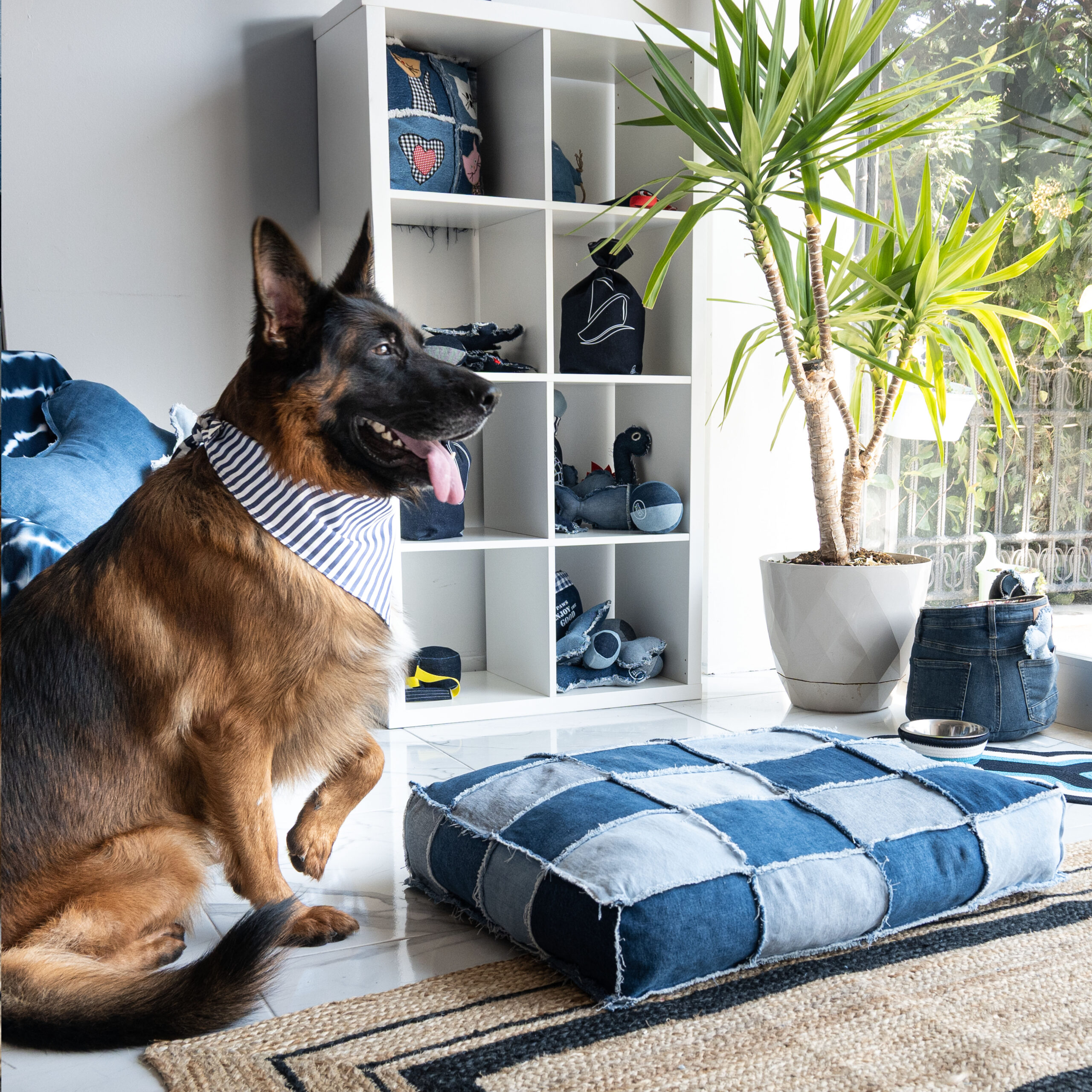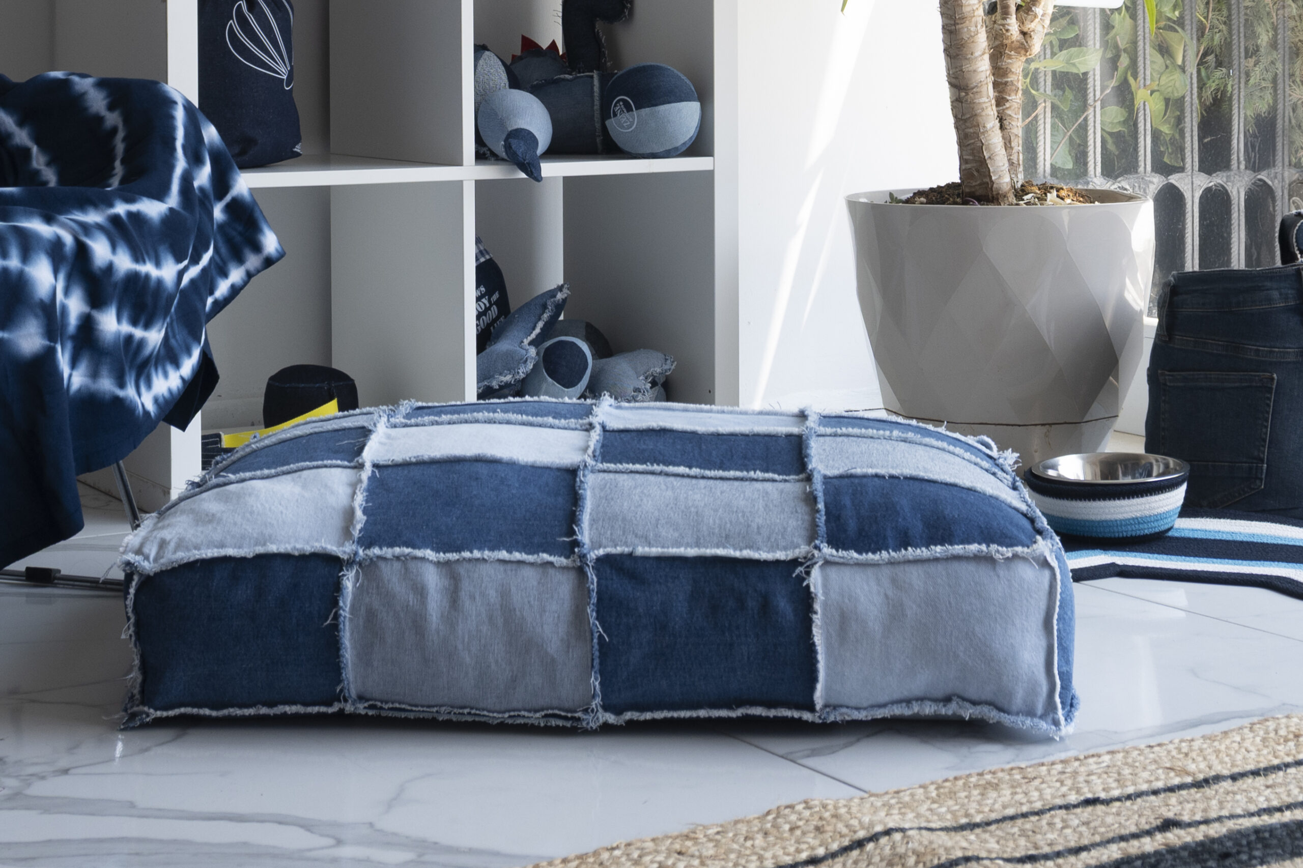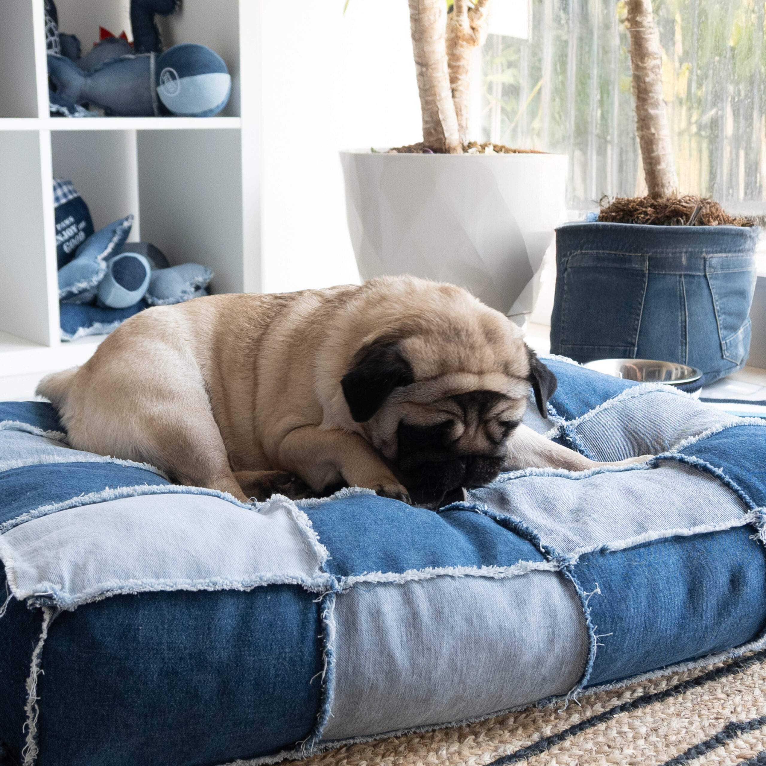 Patchwork Denim Köpek Yatağı – Elyaf Dolgulu El Yapımı Konfor Alanı