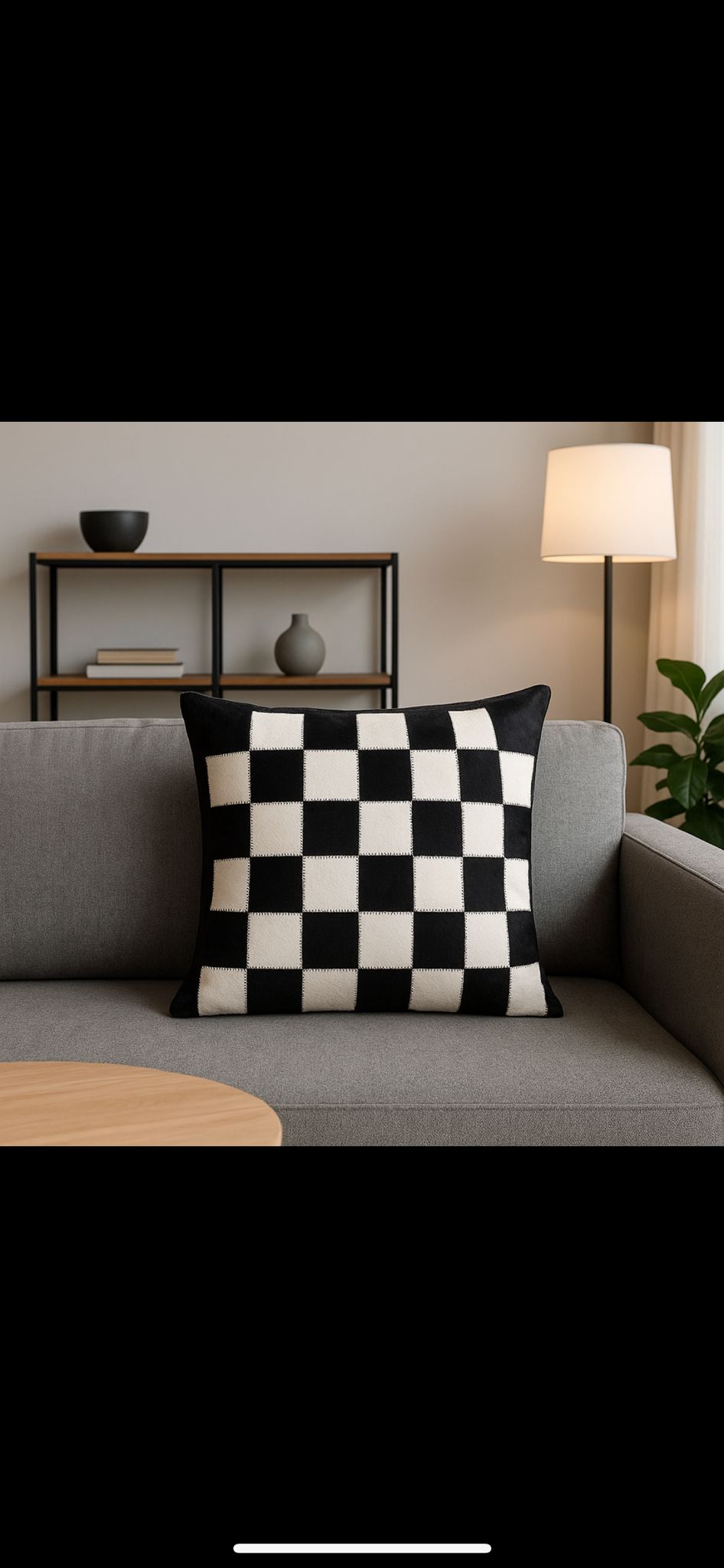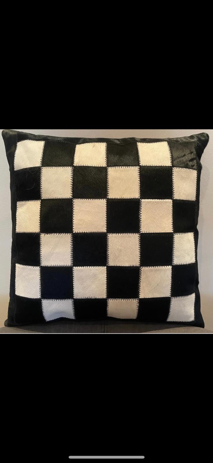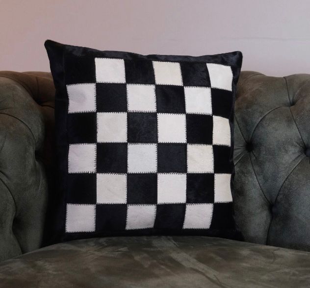 Lüks Deri Patchwork Damalı Desen Dekoratif Yastık