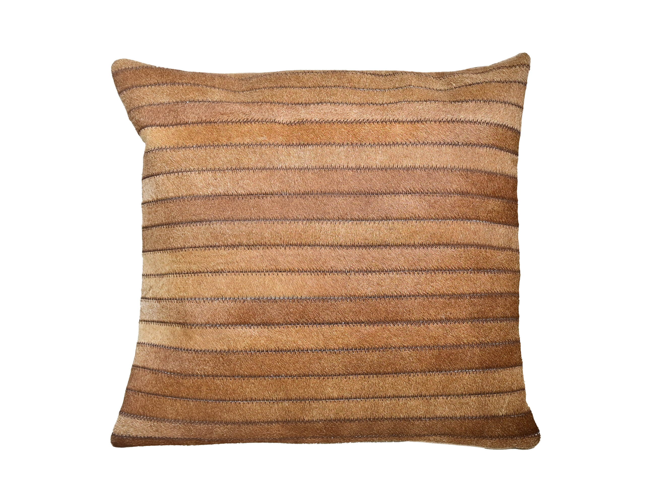 Bu yastık, sadece bir aksesuardan fazlasıdır; gerçek derinin doğal güzelliğini ve usta el dikişinin kalitesini buluşturan bir sanat eseridir. Yatay kahverengi deri şeritler halinde patchwork tekniğiyle bir araya getirilerek benzersiz bir doku ve gölgelendirme derinliği oluşturulmuştur.