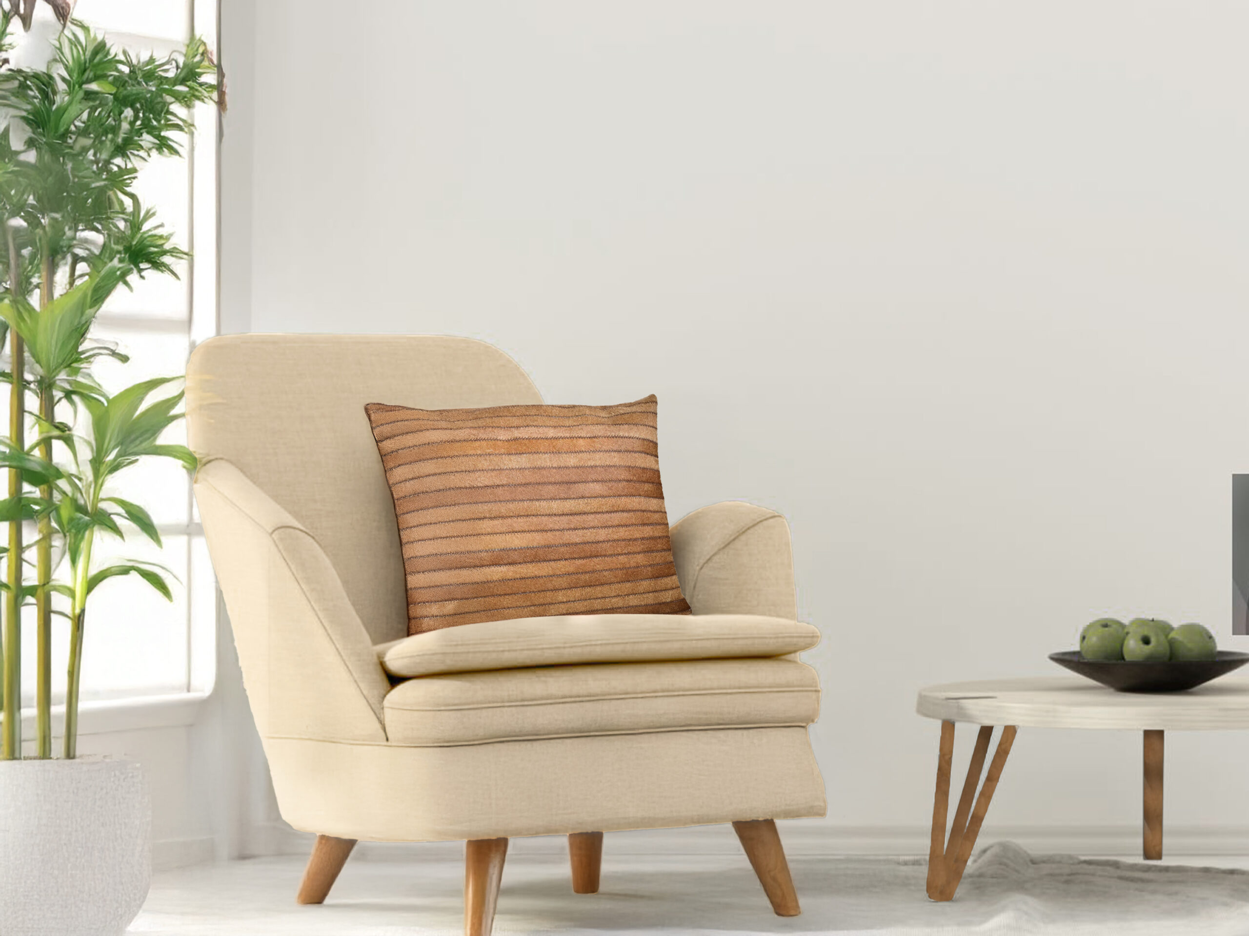 Lüks Kahverengi Deri Şeritli Dekoratif Yastık