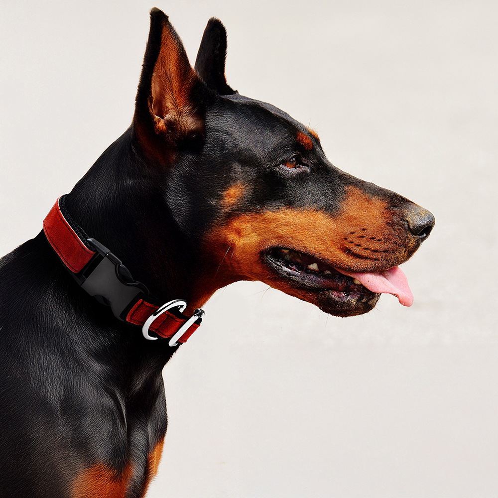 El Yapımı Süet Deri & Pamuk Kolon Köpek Boyun Tasması – Kırmızı | Sürdürülebilir Üretim