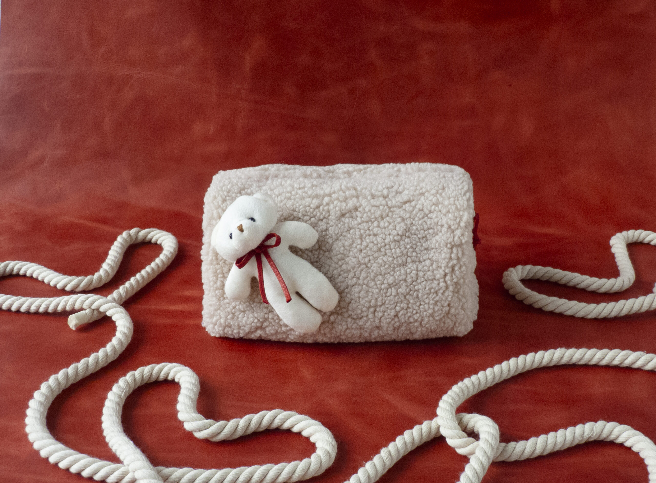 Seyahatlerinizde şıklığınızdan ödün vermeyin! Kurdele detaylı kadın dopp kit çanta, yumuşacık teddy kumaşı ve zarif tasarımıyla hem şık hem de kullanışlı.