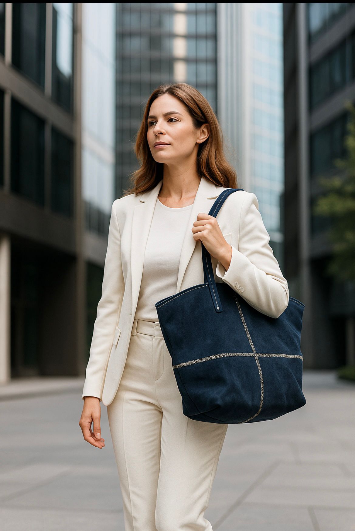 Lacivert Süet Tote Çanta